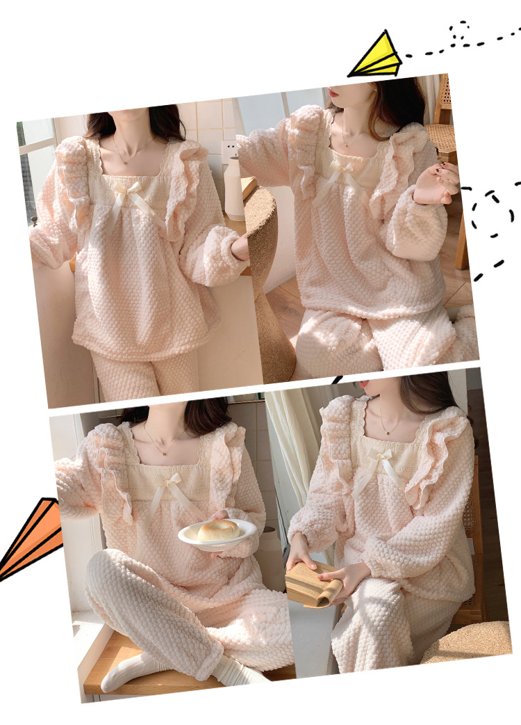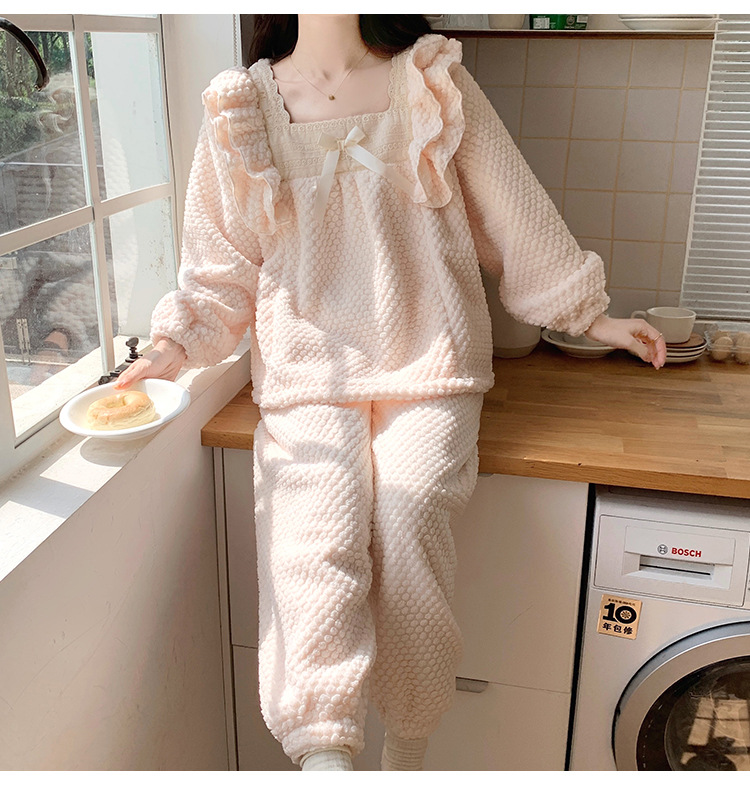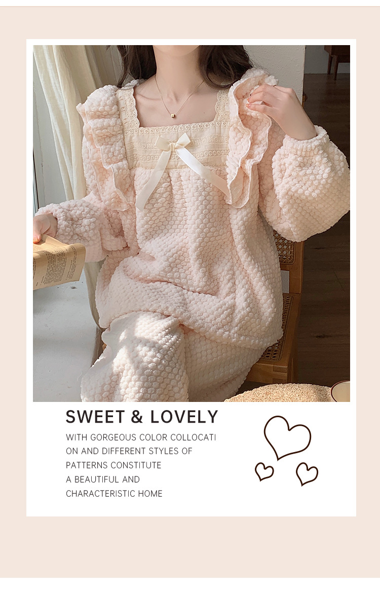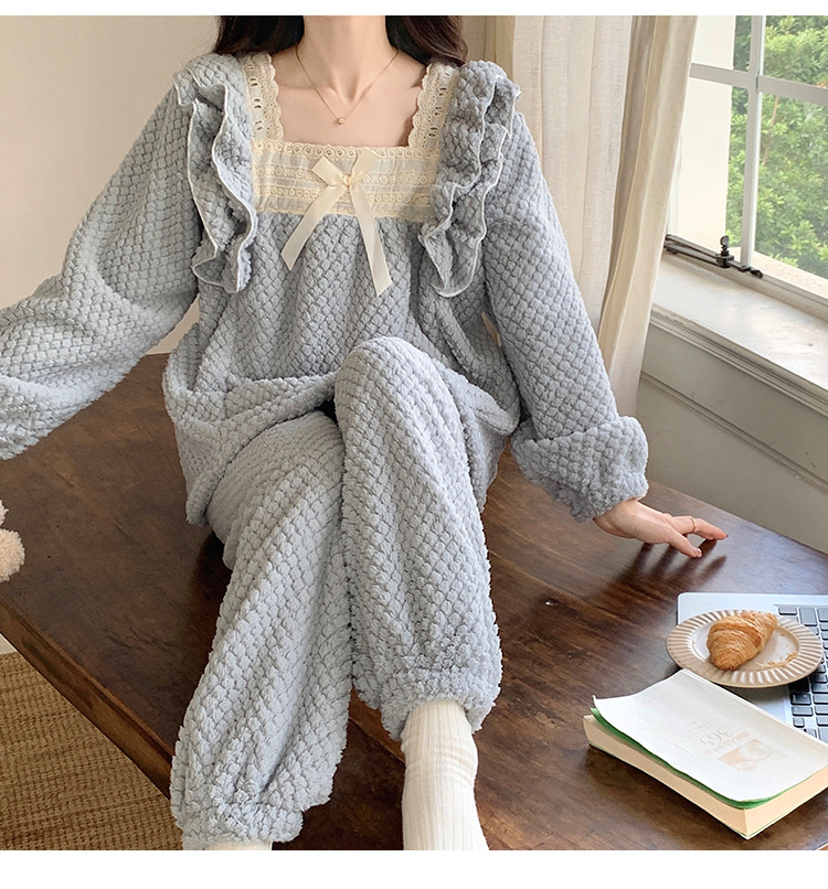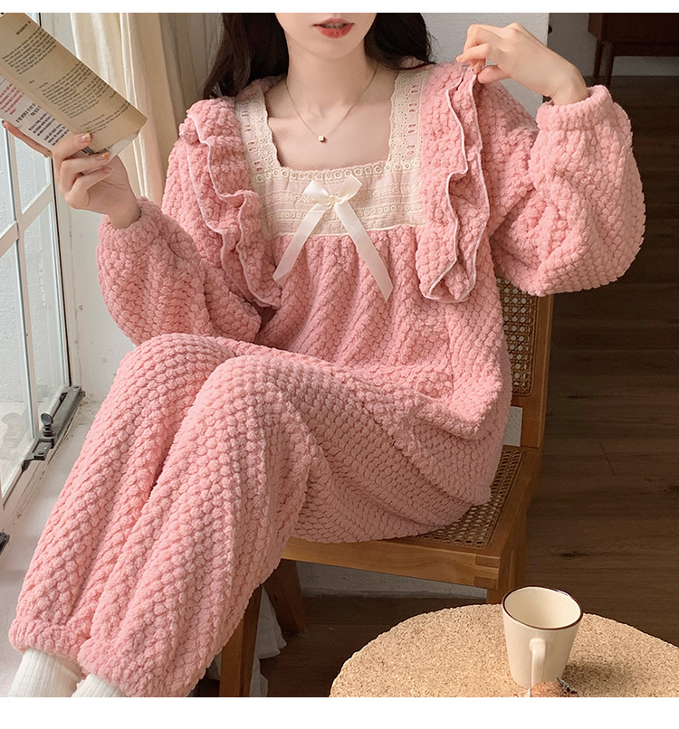 겨울 새로운 잠옷 여자의 긴 소매 장미 벨벳 레이스 공주 바람 느슨한 플러스 사이즈 가을과 겨울 가정 옷 도매스토어 가기