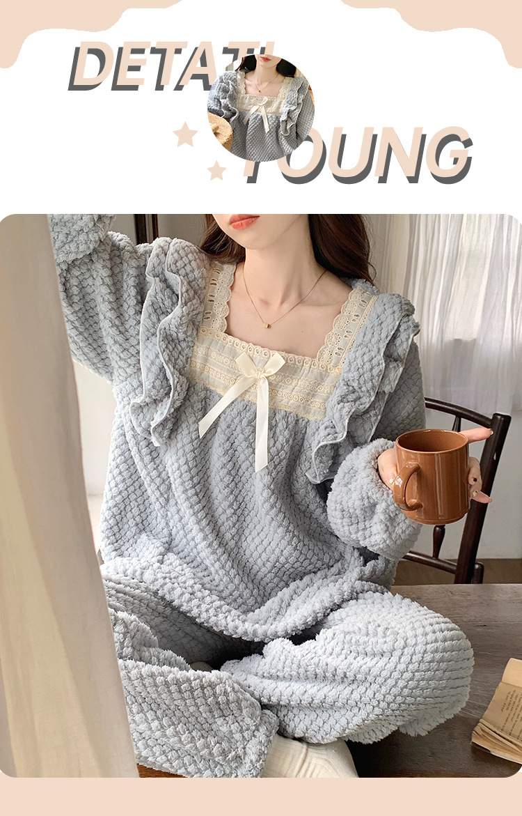 겨울 새로운 잠옷 여자의 긴 소매 장미 벨벳 레이스 공주 바람 느슨한 플러스 사이즈 가을과 겨울 가정 옷 도매