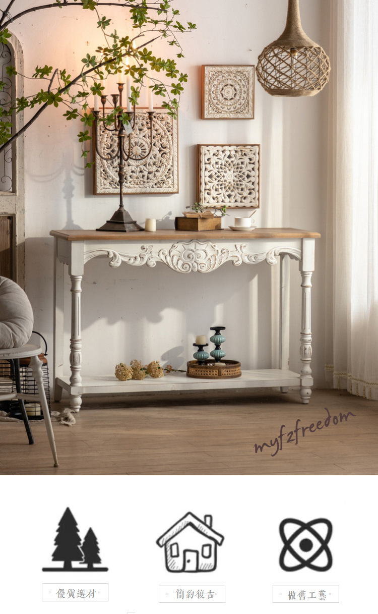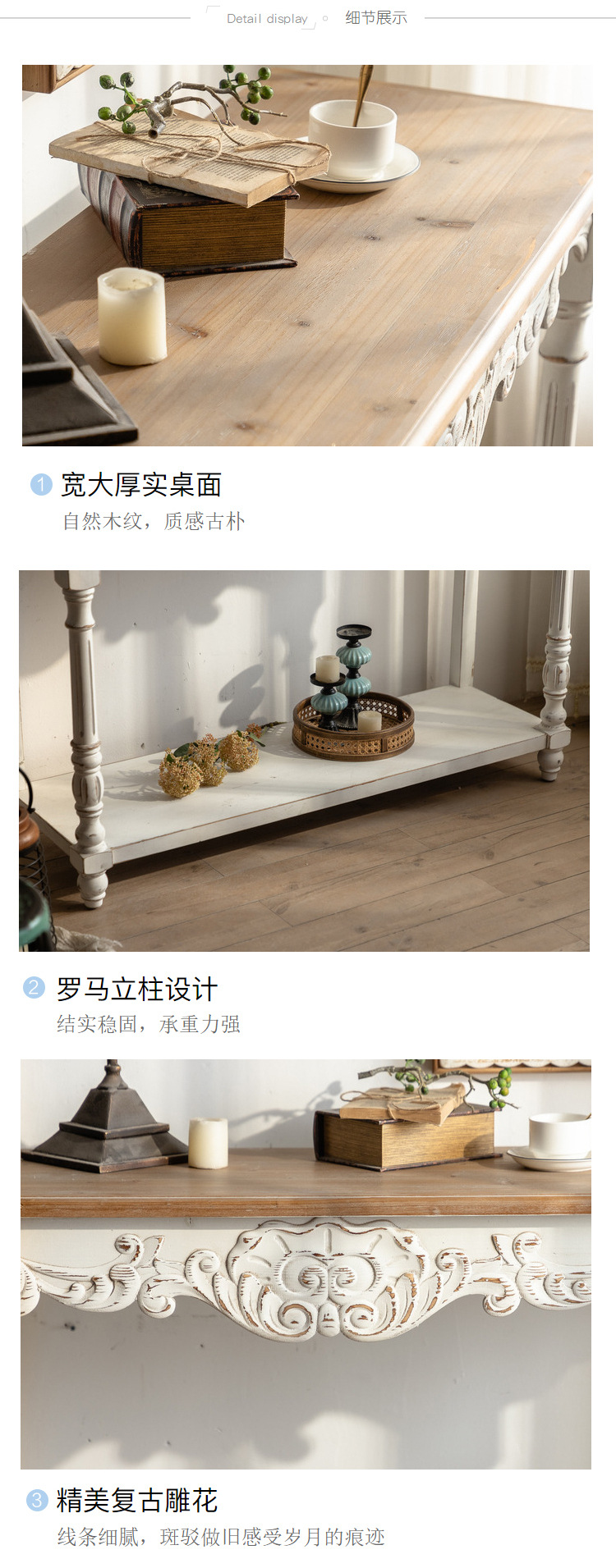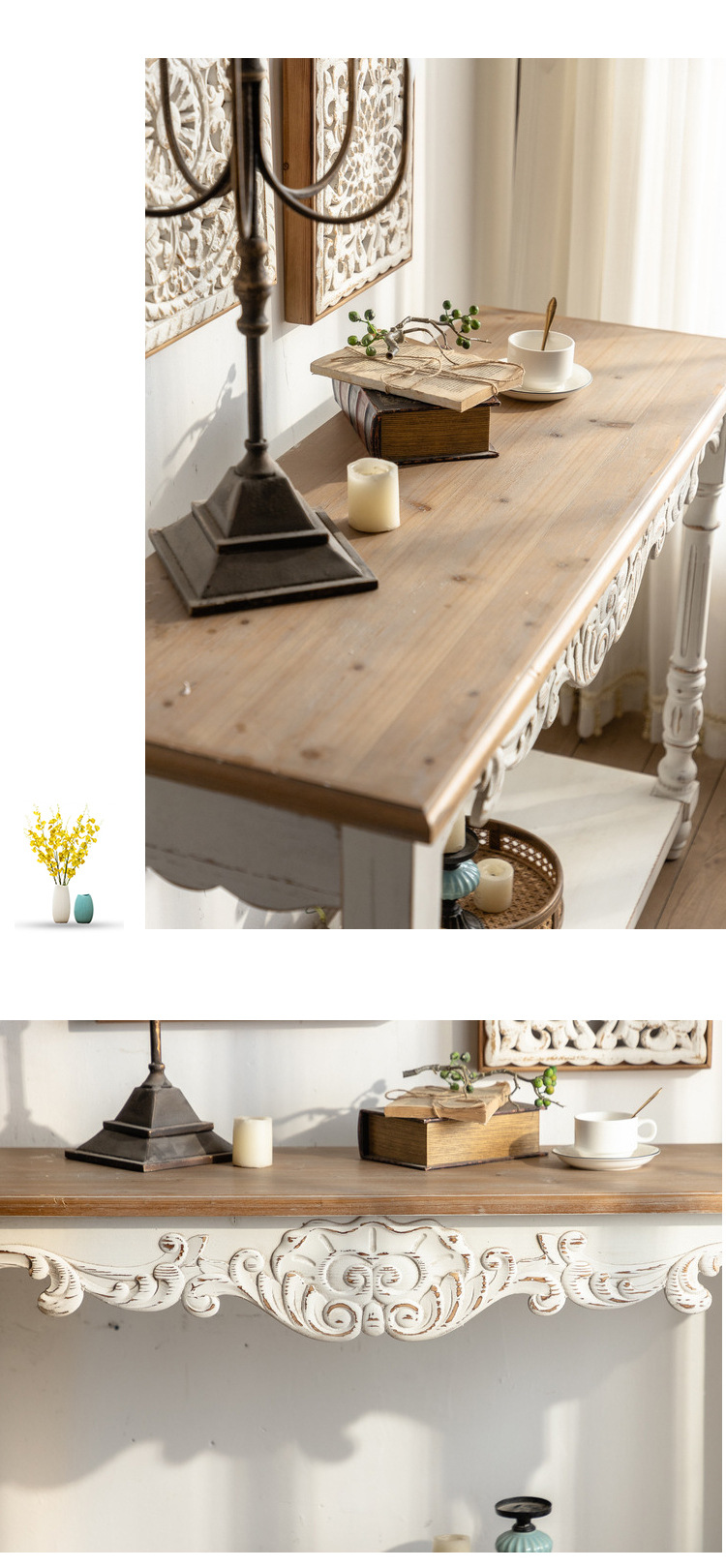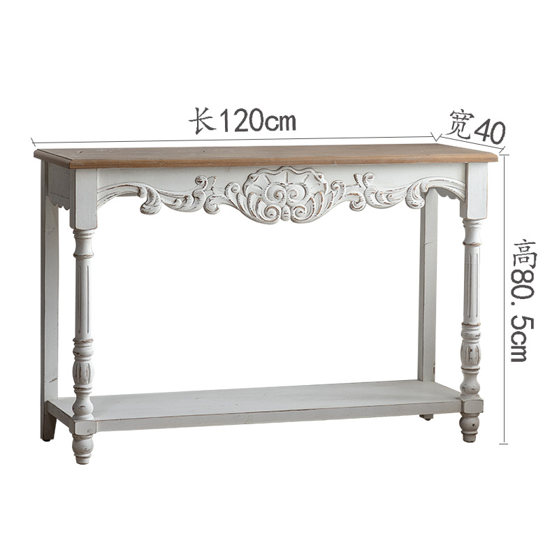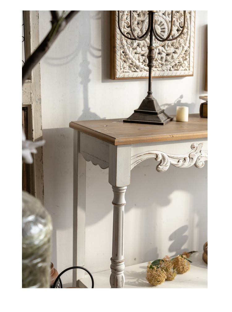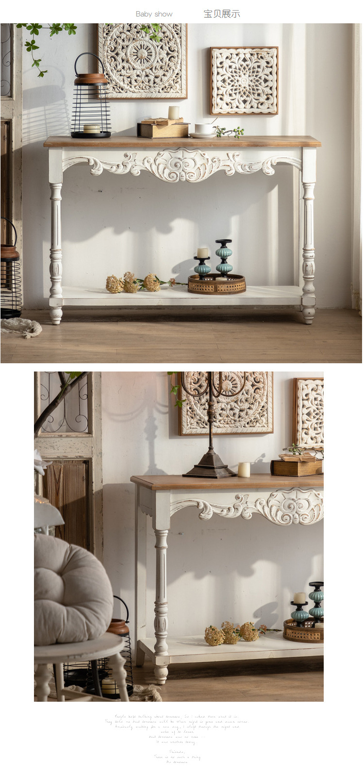 프랑스 스타일 입구 테이블 거실 단단한 나무 조각 오래된 테이블 빈티지 입구 캐비닛 좁은 테이블 벽 장식 흰색
