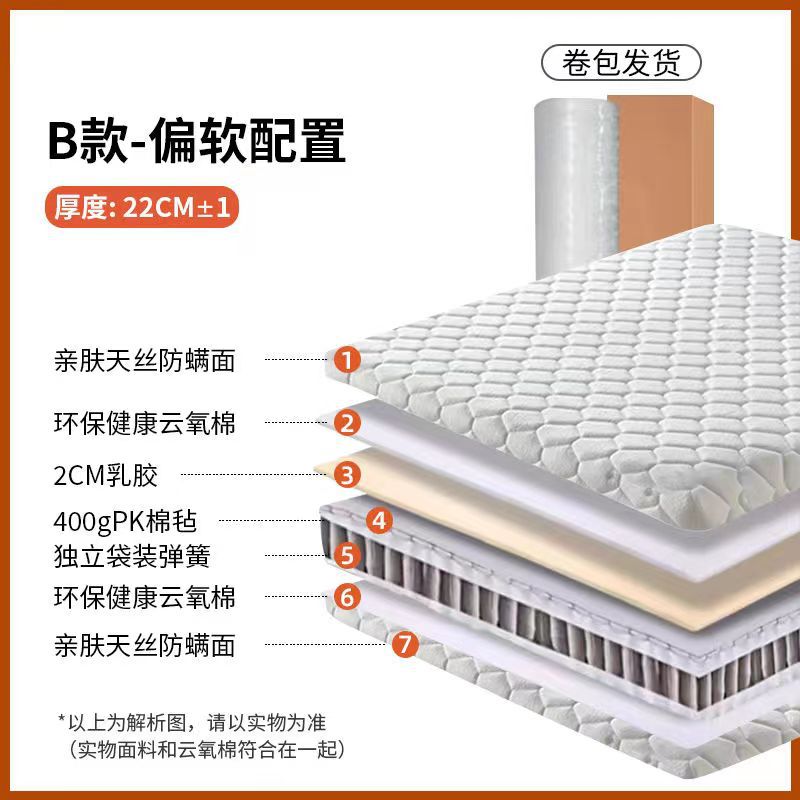 • B: 독립 포켓 스프링 + 라텍스 22cm 부드럽고 편안함