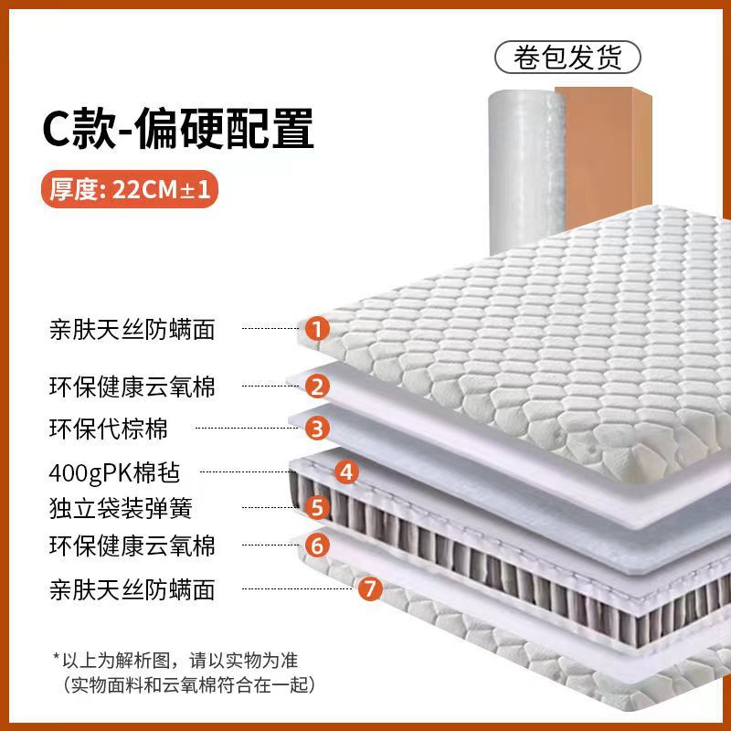 • C: 독립 포켓 스프링 + 세대 다크 브라운 면 22cm 수면 하드