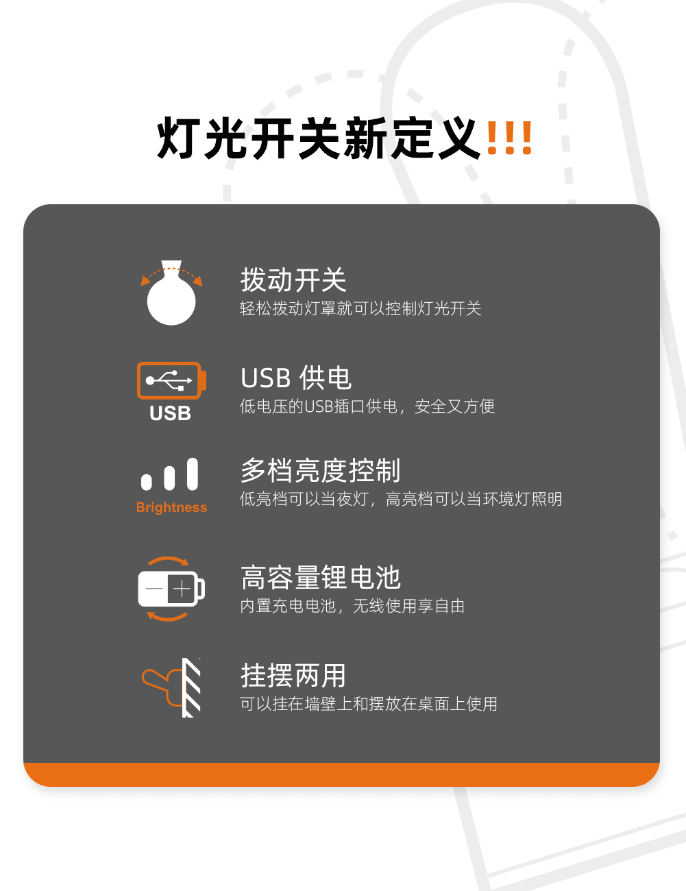 JANPIM 샤먼 심플 토글 라이트 실내 침실 침대 옆 분위기 조명 충전식 벽등 야간 조명 작은 야간등