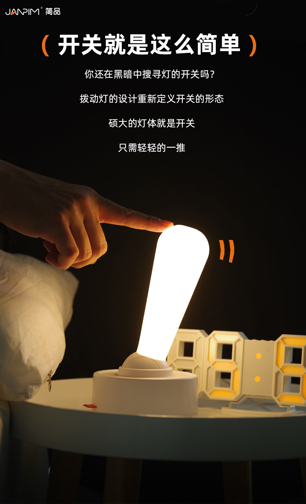JANPIM 샤먼 심플 토글 라이트 실내 침실 침대 옆 분위기 조명 충전식 벽등 야간 조명 작은 야간등스토어 가기