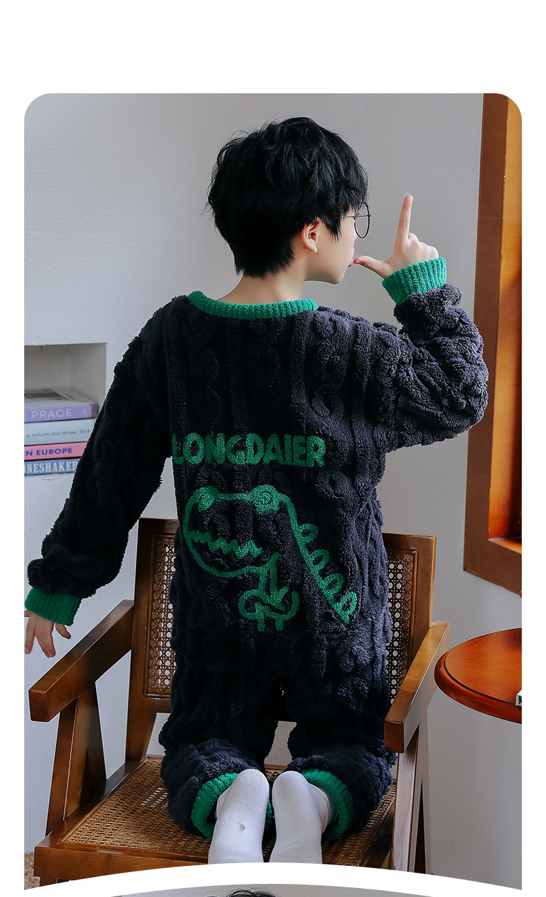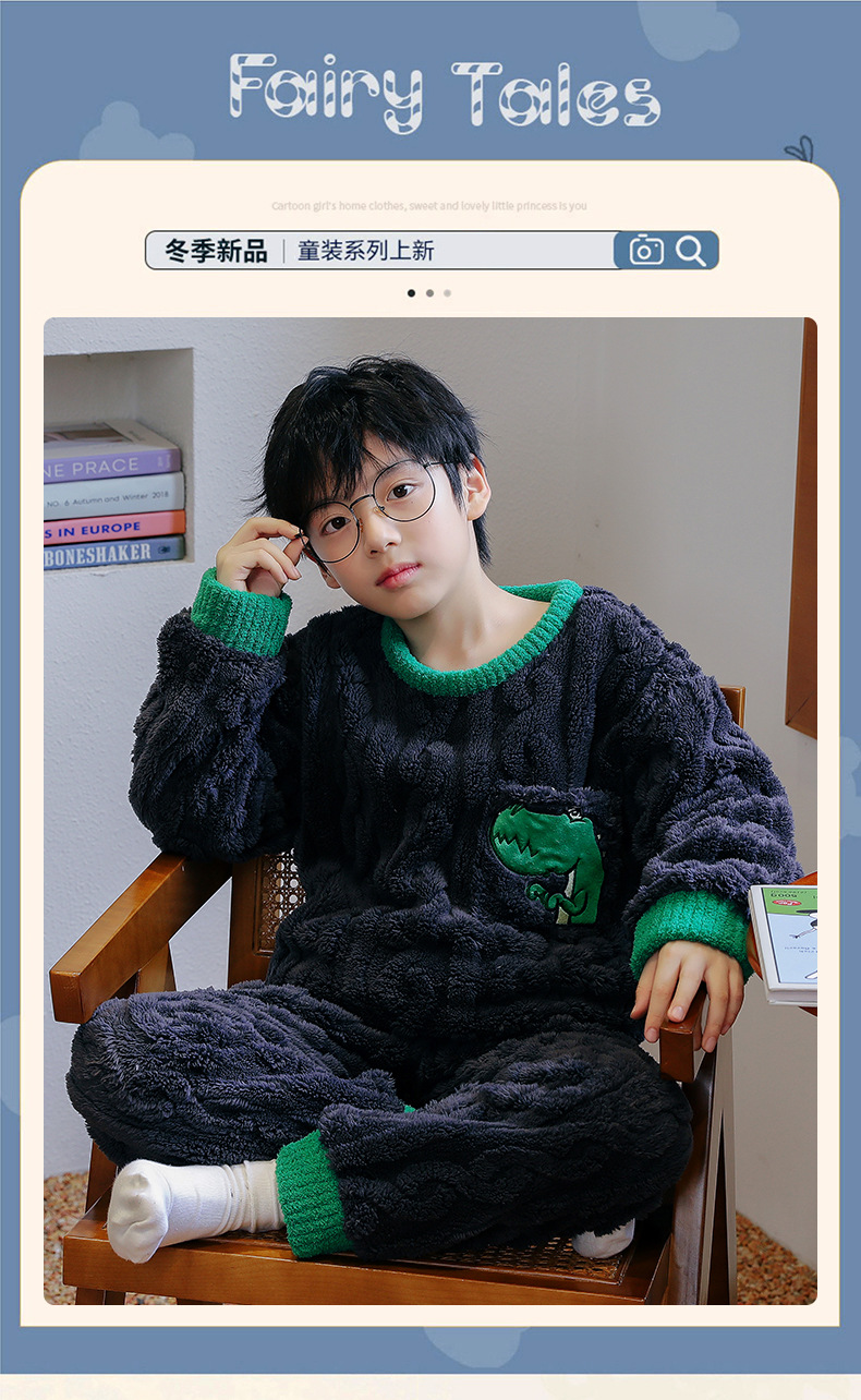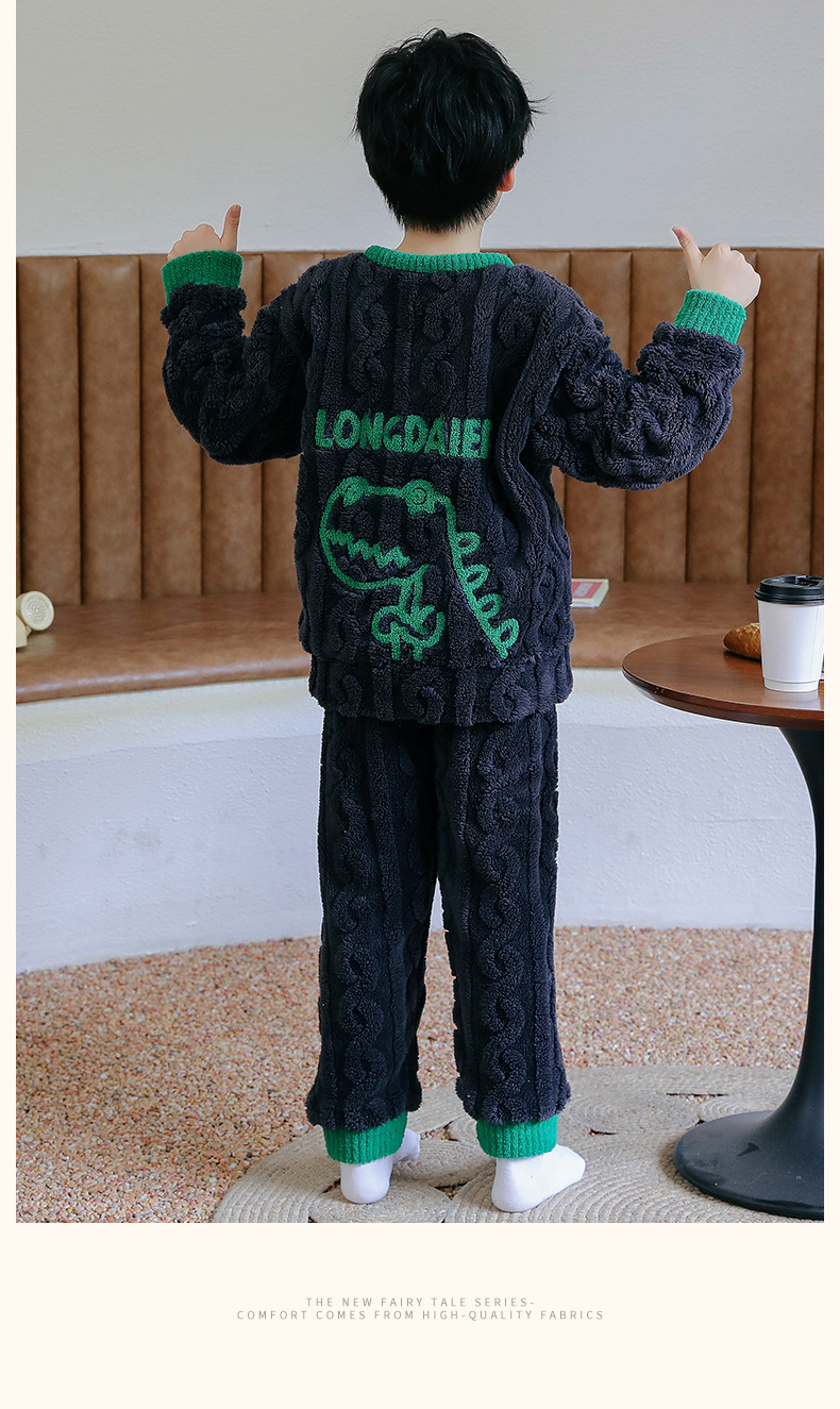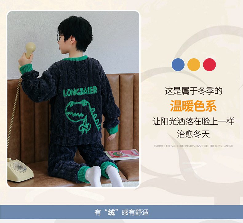 男童睡衣秋冬季珊瑚绒儿童恐龙男孩宝宝法兰绒加厚冬款家居服套装