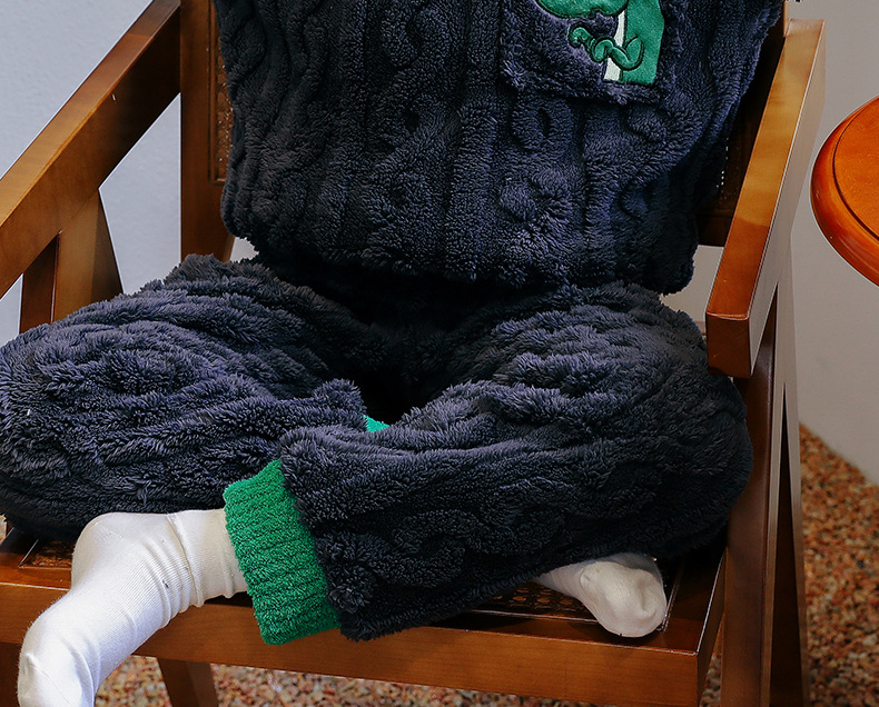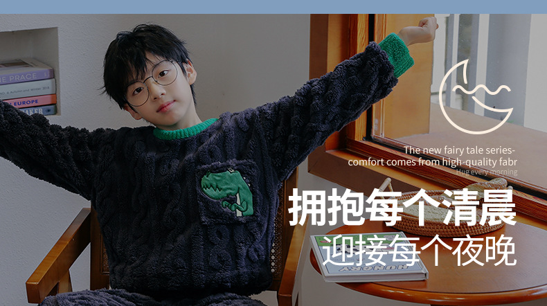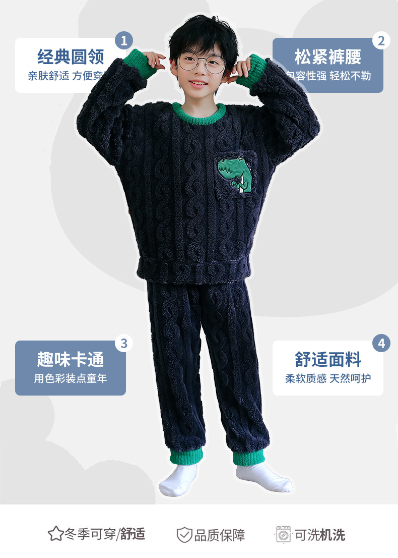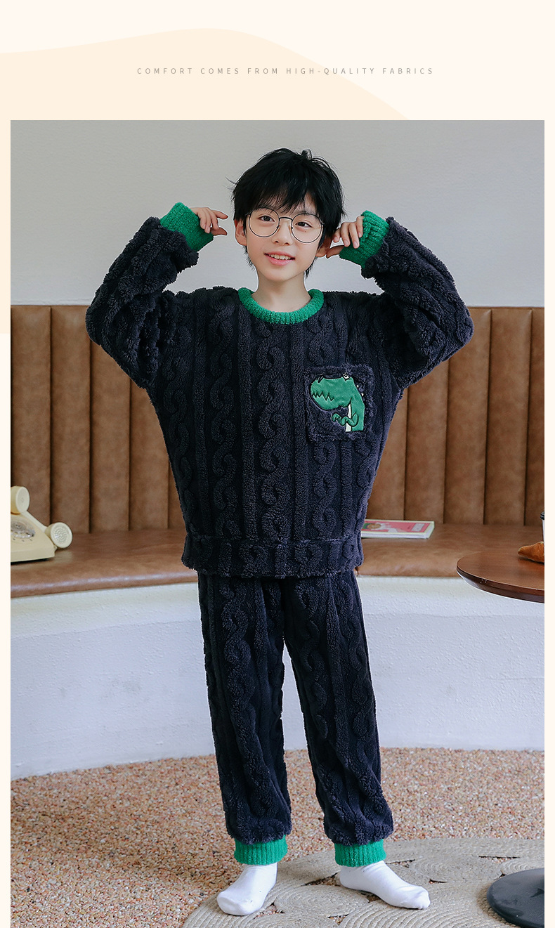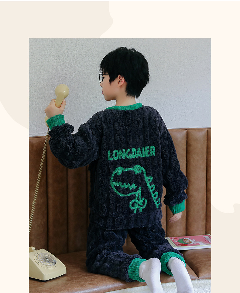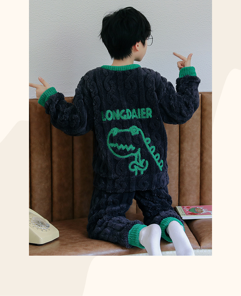 男童睡衣秋冬季珊瑚绒儿童恐龙男孩宝宝法兰绒加厚冬款家居服套装