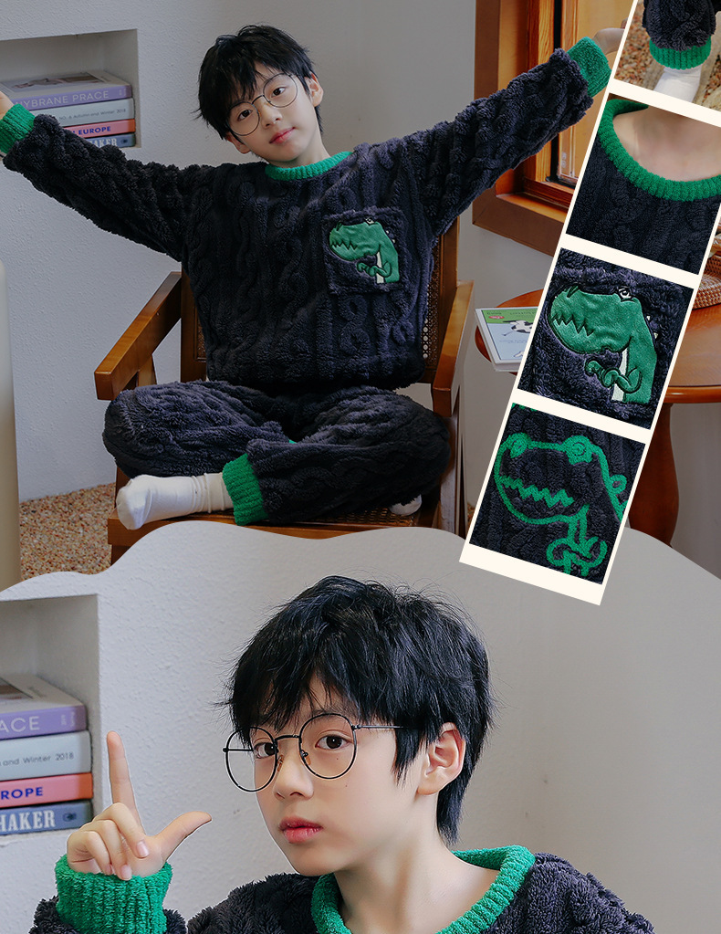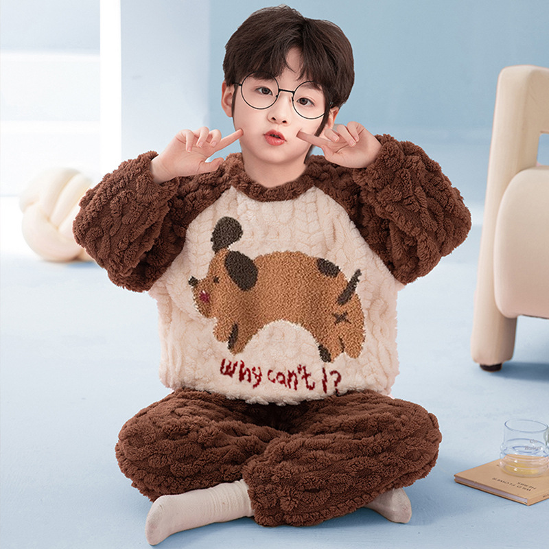 어린이 잠옷 산호 벨벳 겨울 만화 귀여운 소년 중대형 어린이 가을 겨울 소년 플란넬 가정복 세트