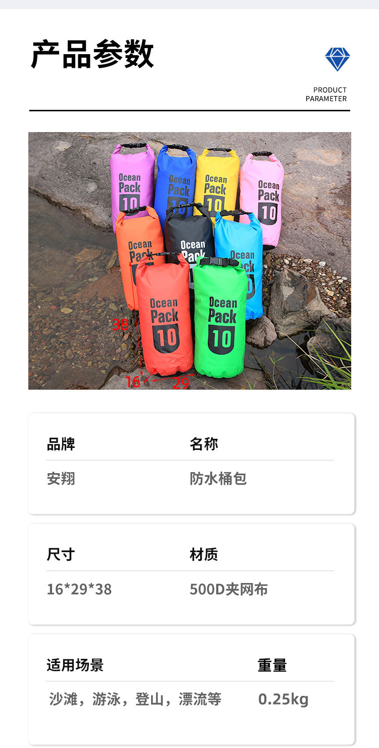 공장 직공급 야외 5L 방수 가방 여행 장비 스노클링 수영 가방 500D 메쉬 플로팅 백 방수 버킷 백