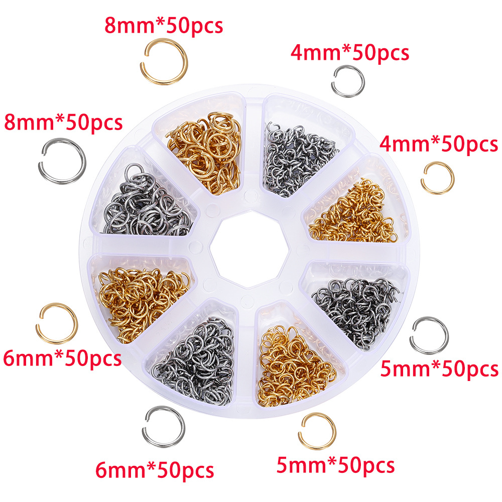 • 8 그리드 골드 스틸 스테인레스 스틸 오픈 링 세트