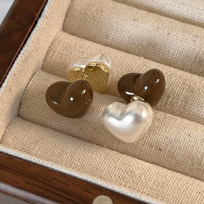 양면 사랑 진주 귀걸이 여성 2023 새로운 유행 홍콩 스타일 패션 우아한 귀 보석 핑크 달콤한 귀걸이스토어 가기