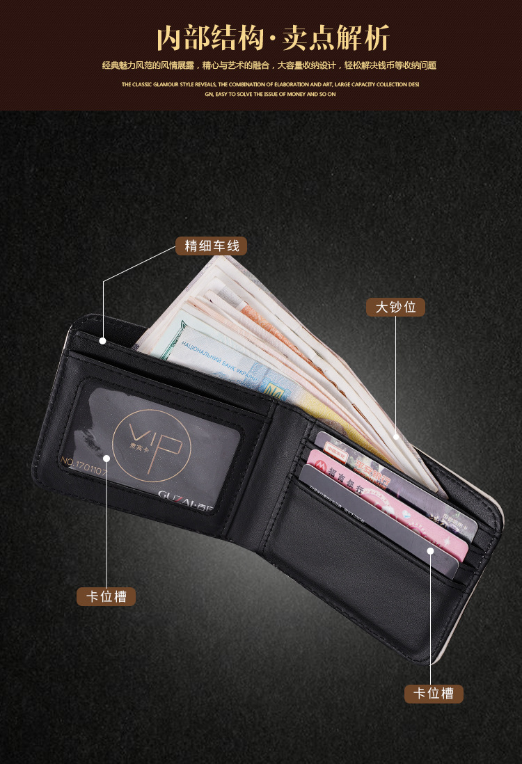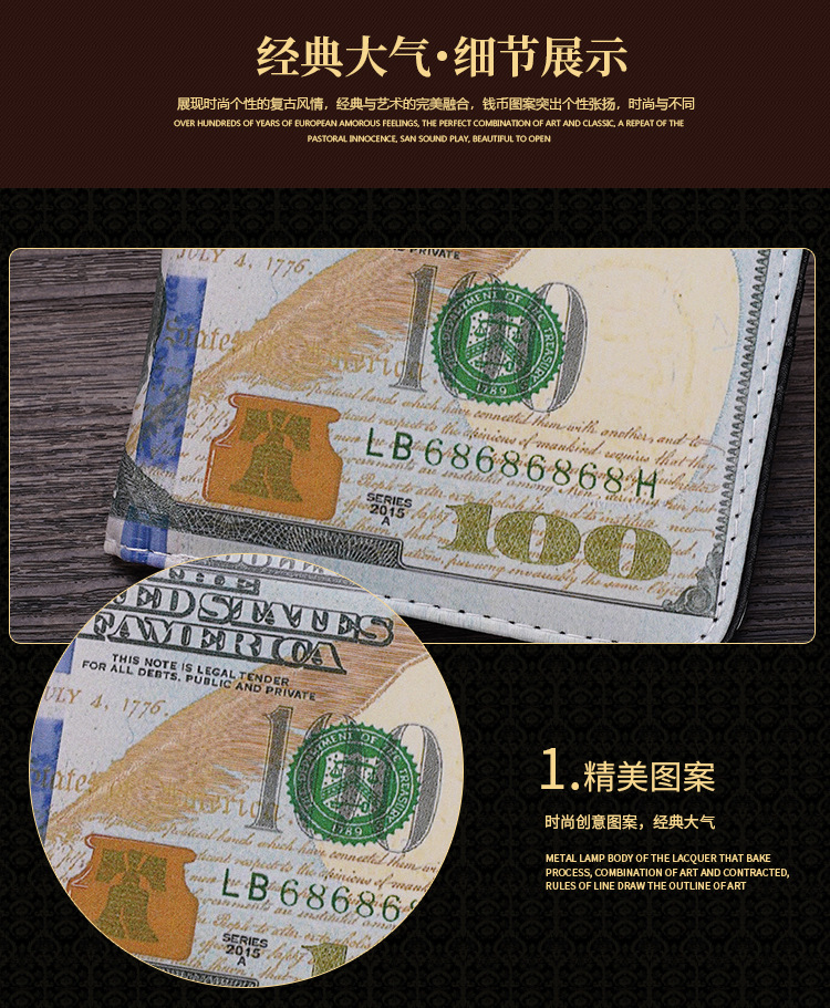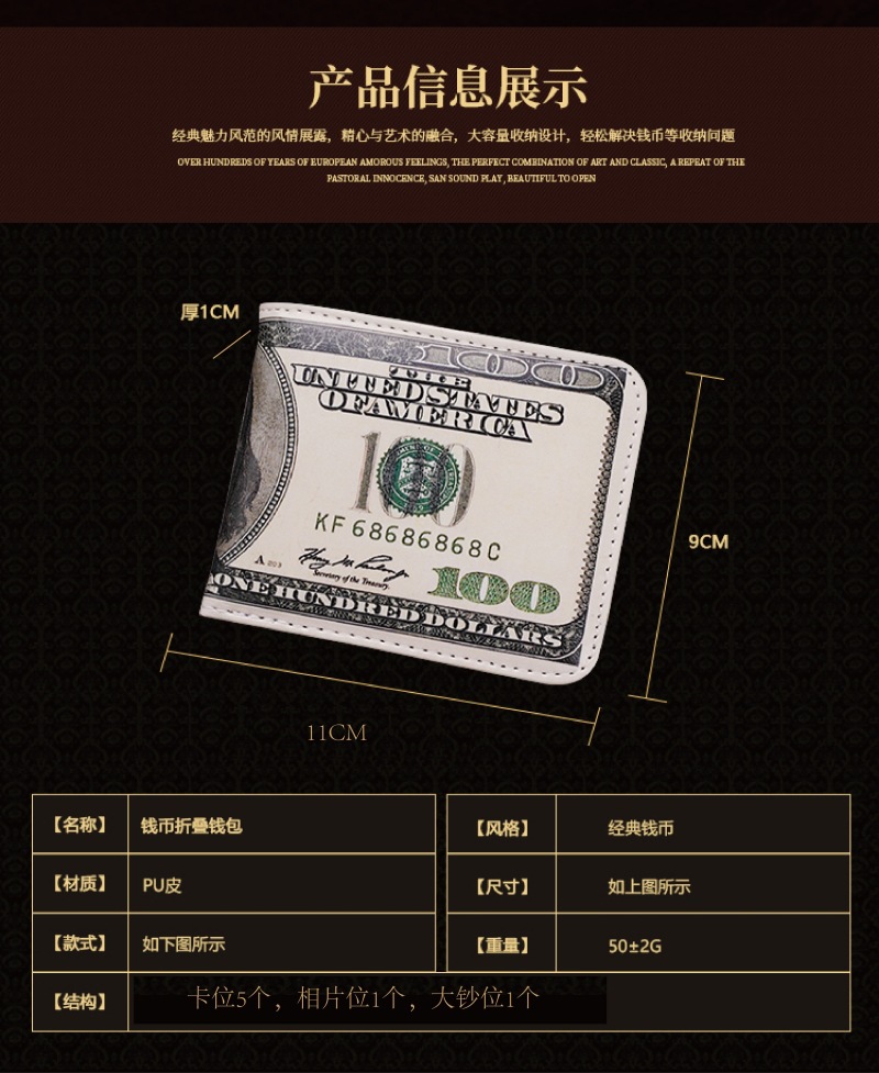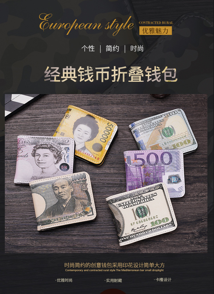 새로운 지갑 남성용 짧은 지폐 창조적 인 인쇄 유럽과 미국으로 수출 멀티 카드 슬롯 대용량 지갑 국경을 사용자 정의 할 수 있습니다