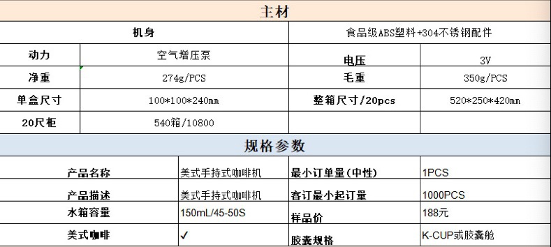 전기 휴대용 커피 기계 휴대용 미국 캡슐 커피 분말 범용 여행 휴대용 미니 커피 기계