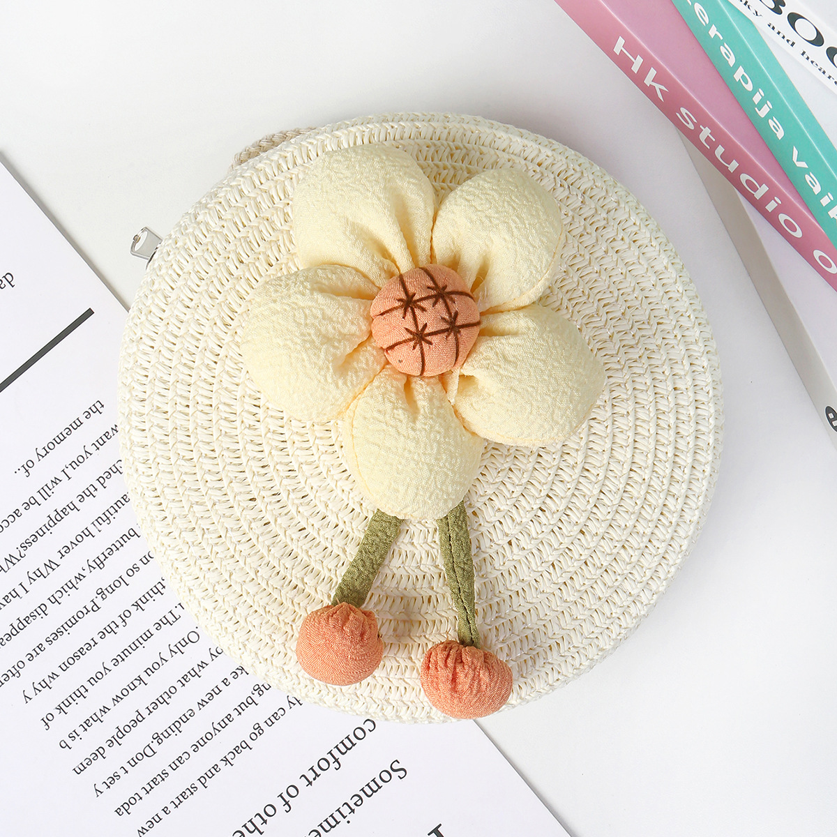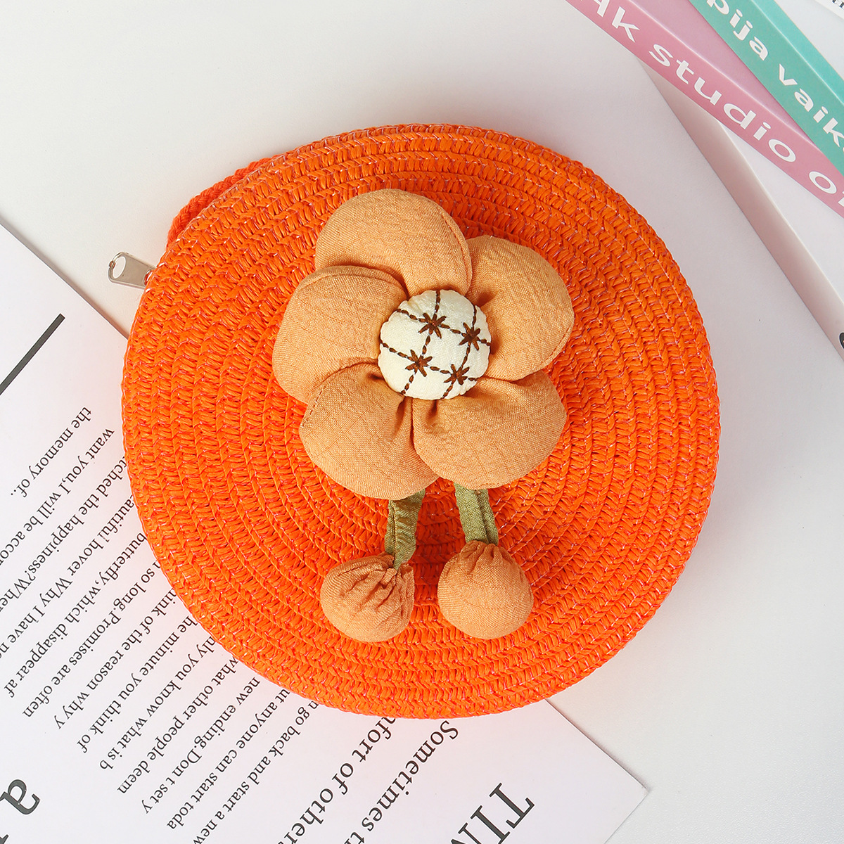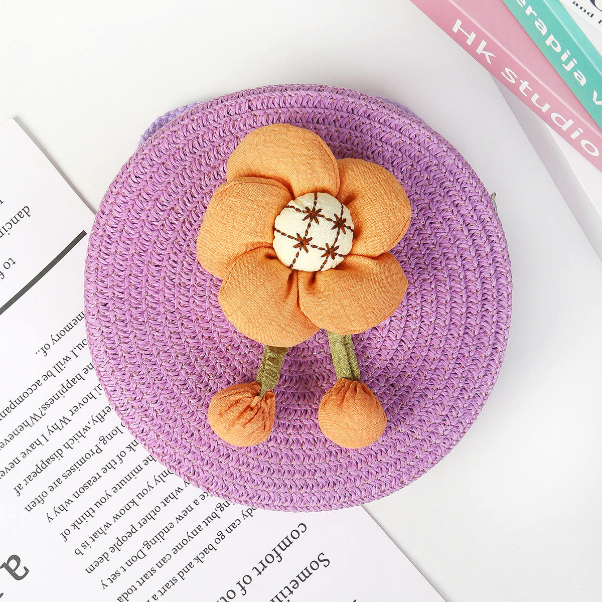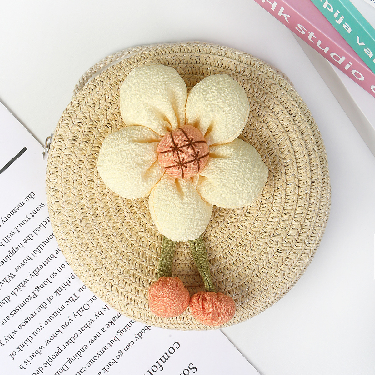 어린이 꽃 액세서리 밀짚 짠 가방 패션 수제 짠 동전 지갑 스타일에 귀여운 야외 휴대용 숄더 백