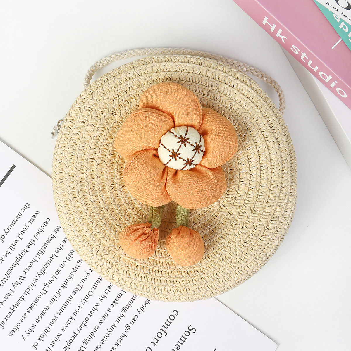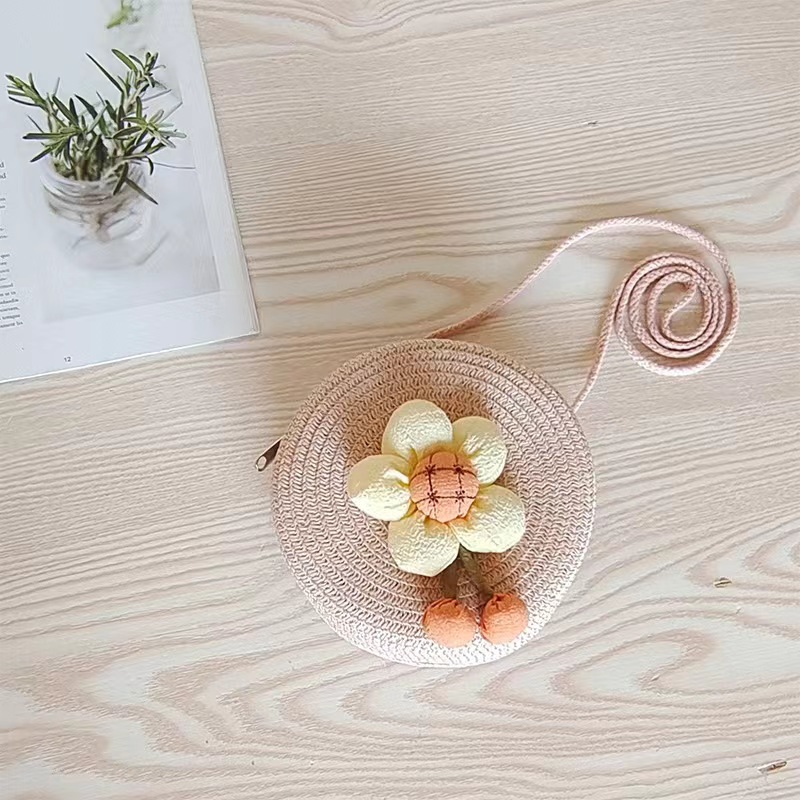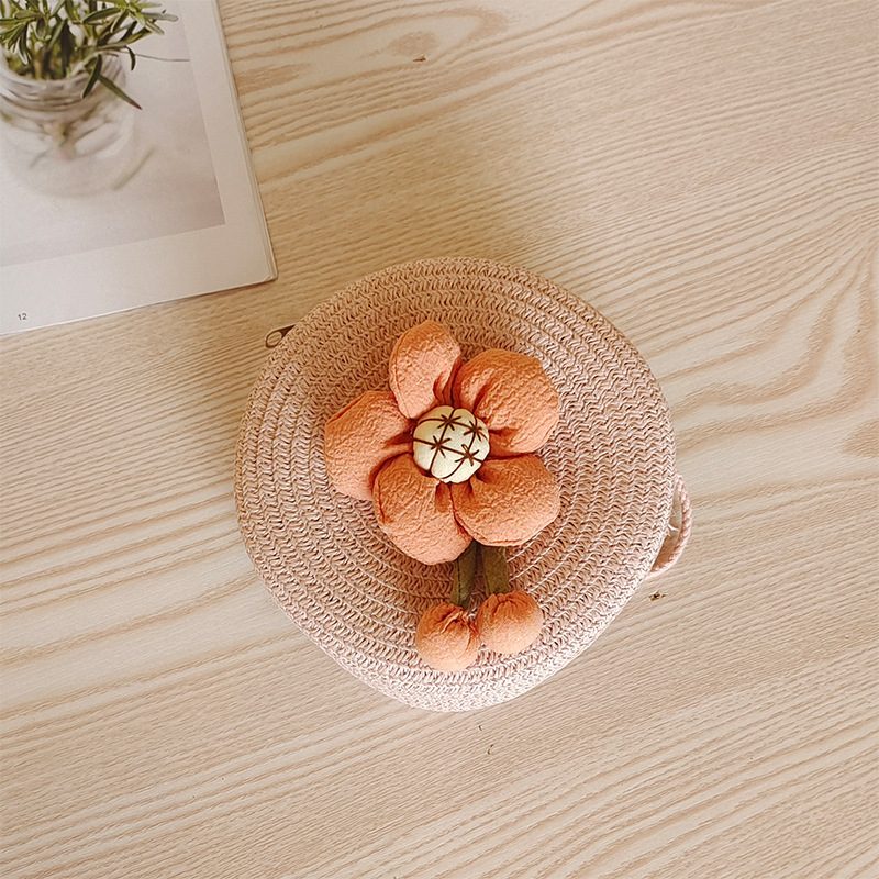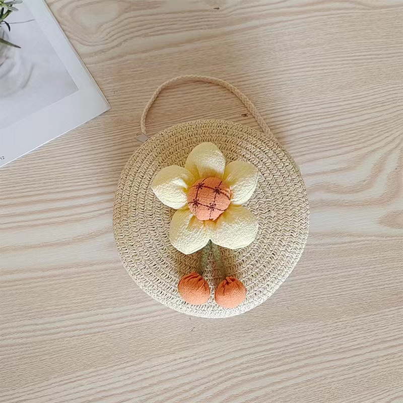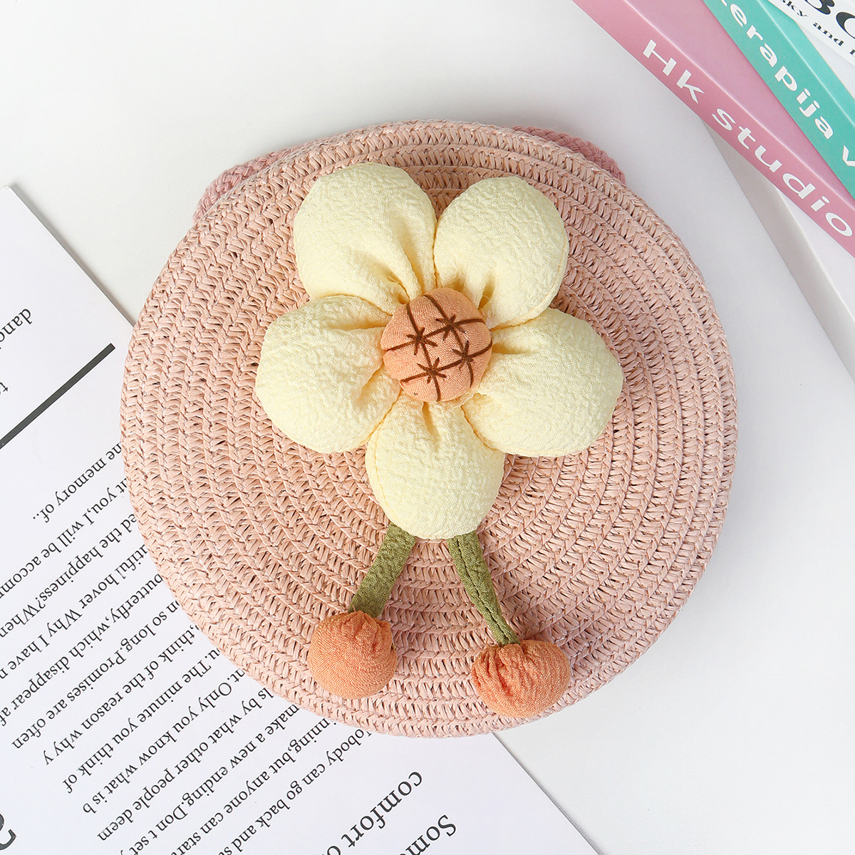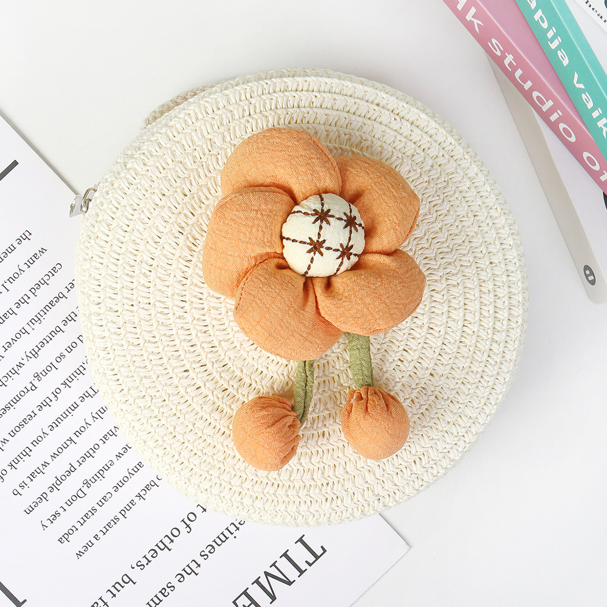 어린이 꽃 액세서리 밀짚 짠 가방 패션 수제 짠 동전 지갑 스타일에 귀여운 야외 휴대용 숄더 백