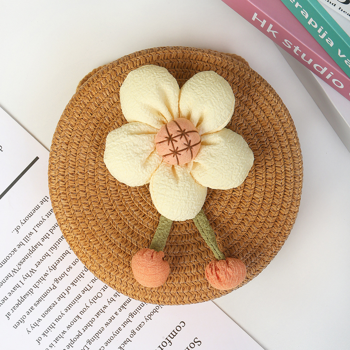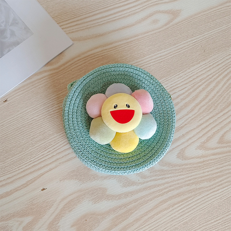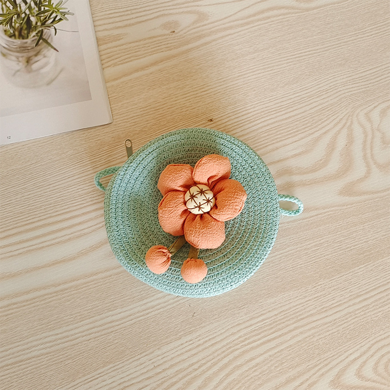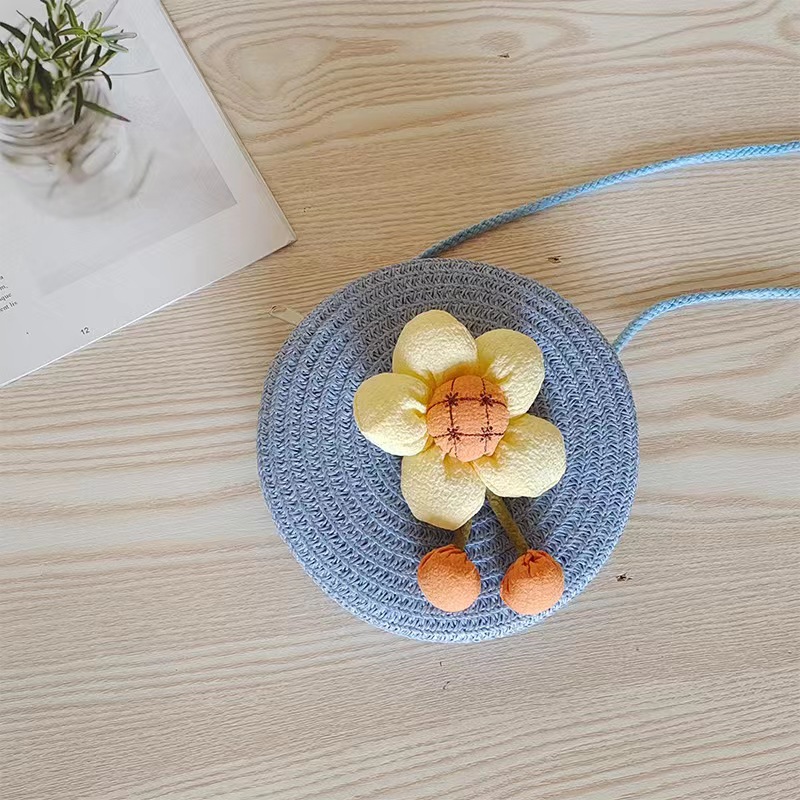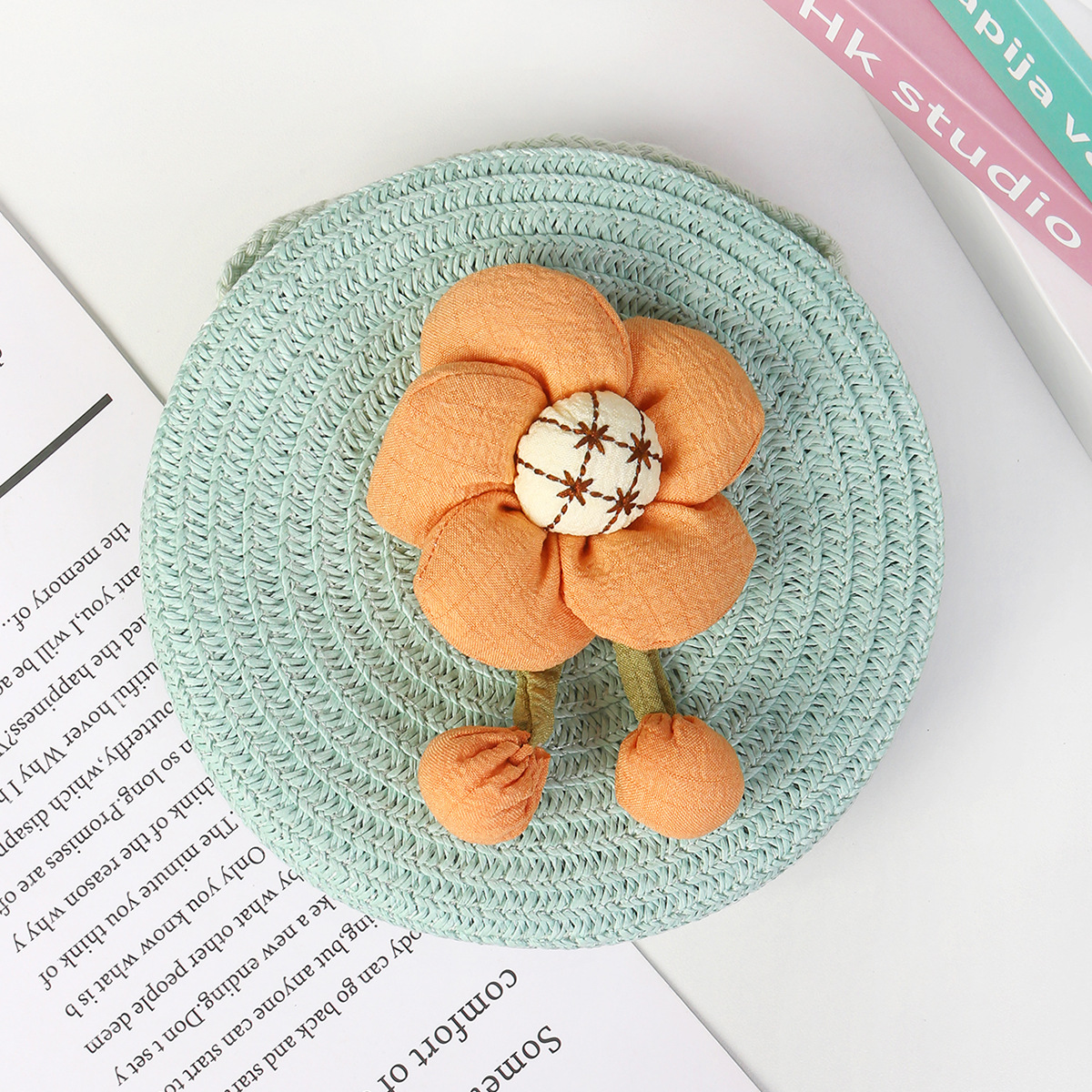 어린이 꽃 액세서리 밀짚 짠 가방 패션 수제 짠 동전 지갑 스타일에 귀여운 야외 휴대용 숄더 백