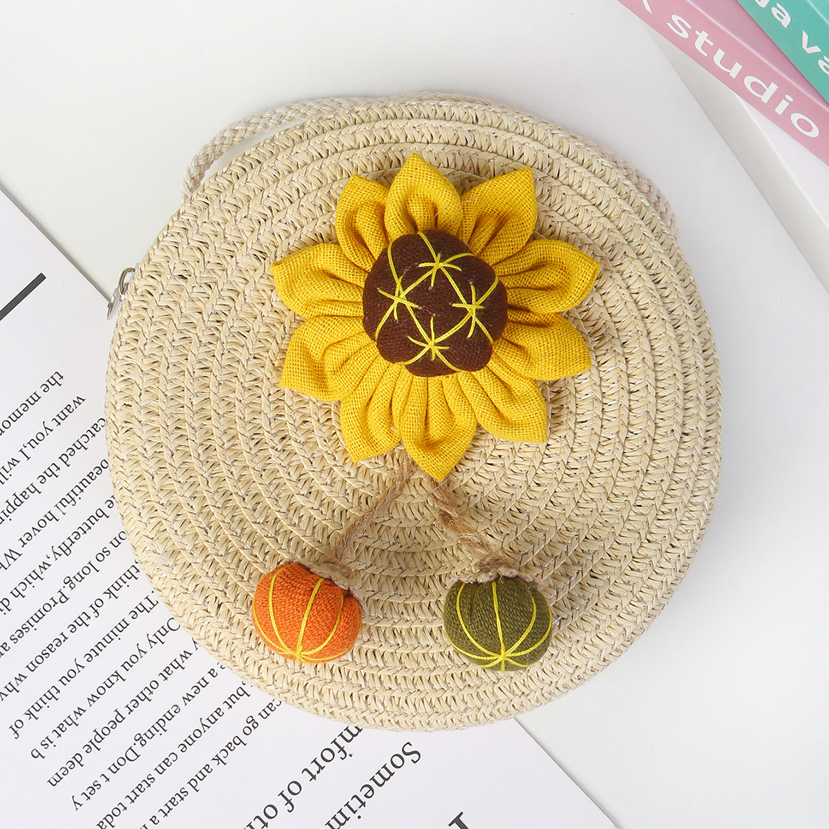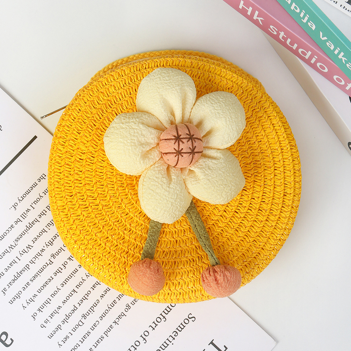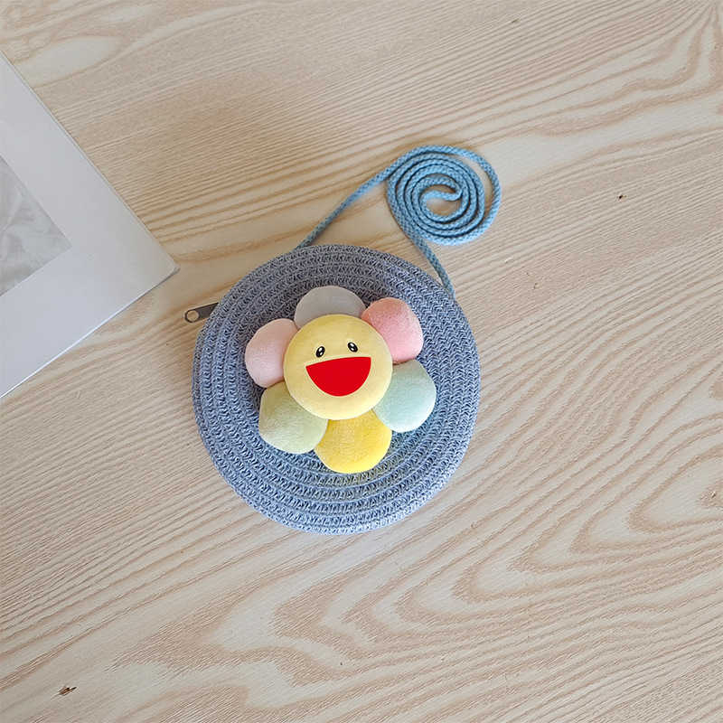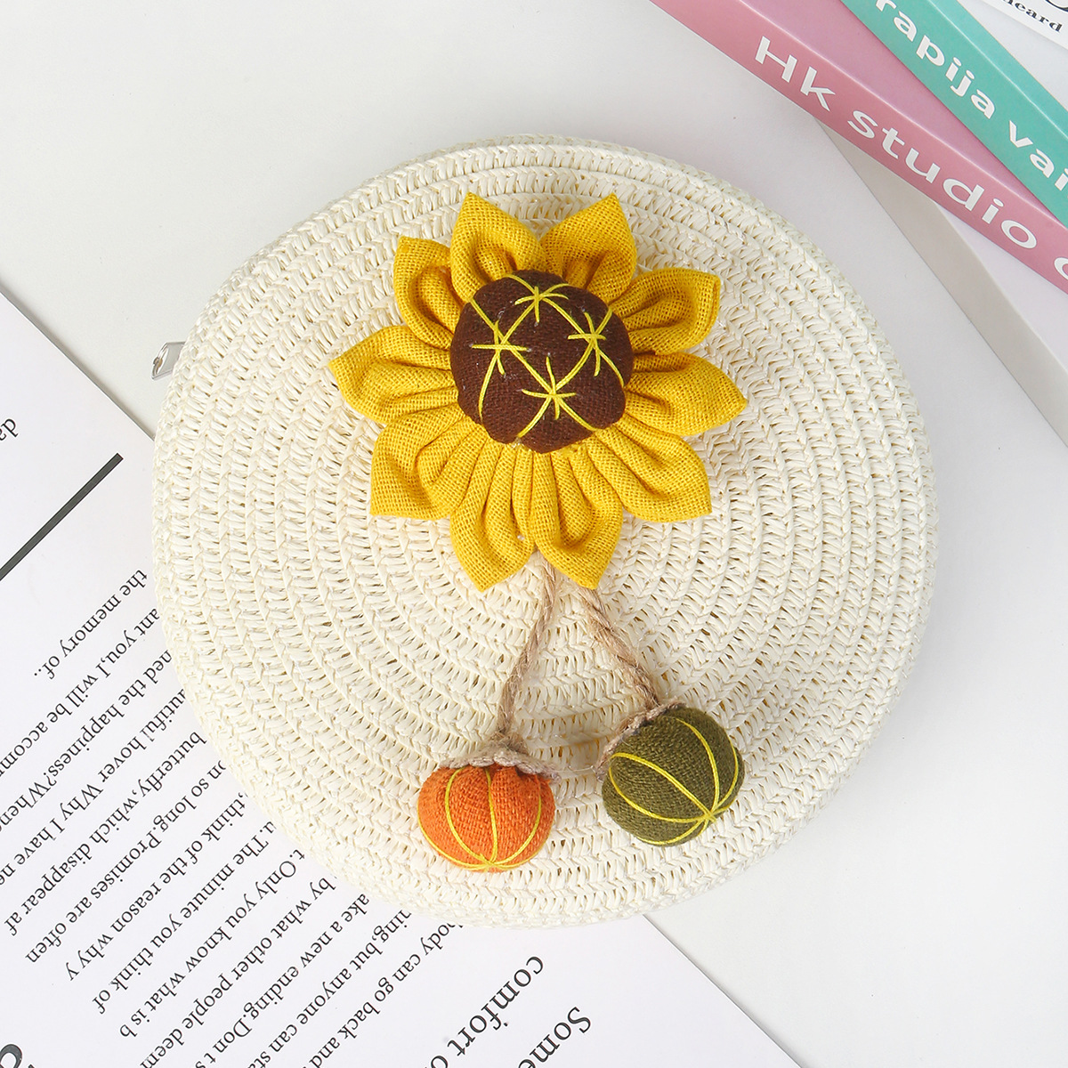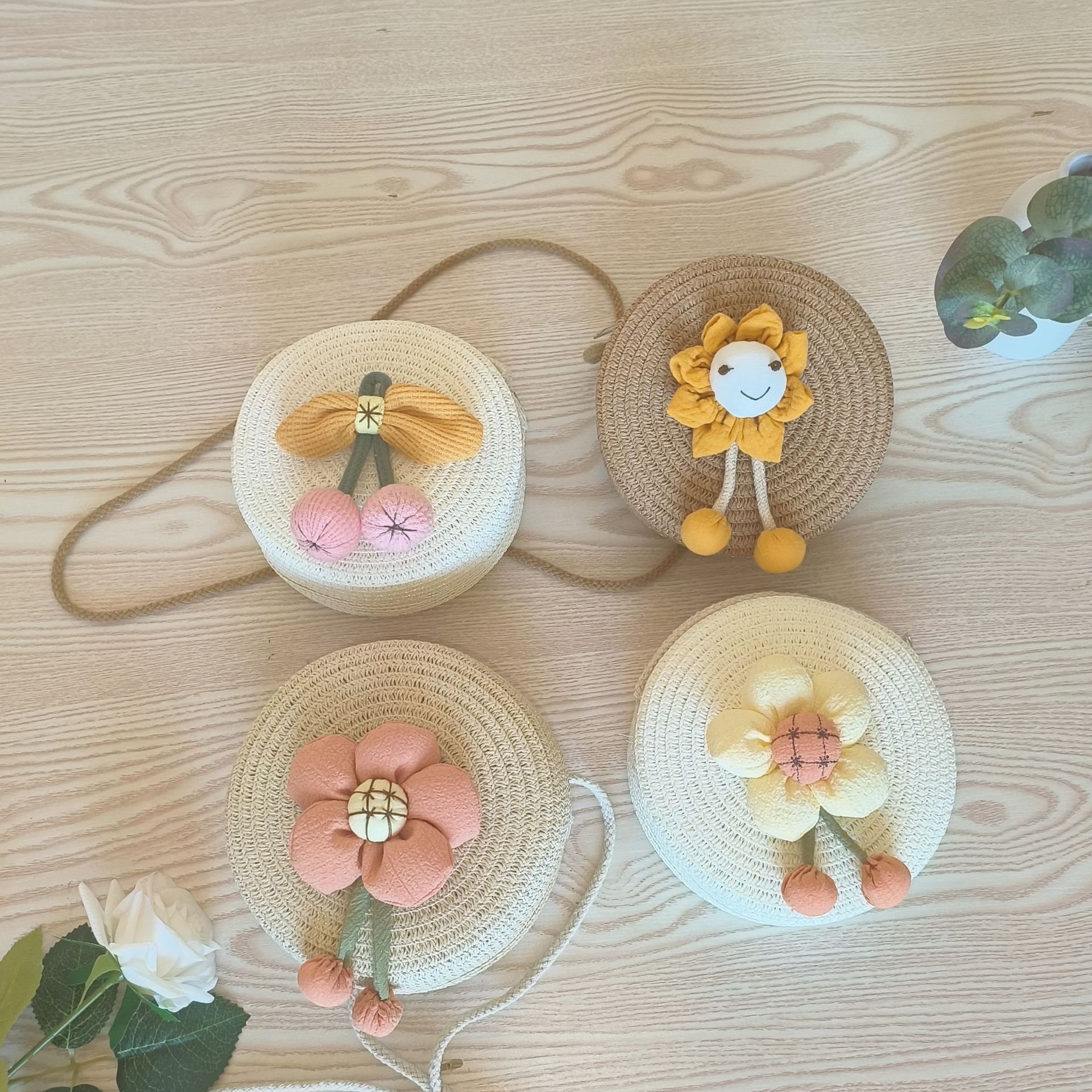 어린이 꽃 액세서리 밀짚 짠 가방 패션 수제 짠 동전 지갑 스타일에 귀여운 야외 휴대용 숄더 백