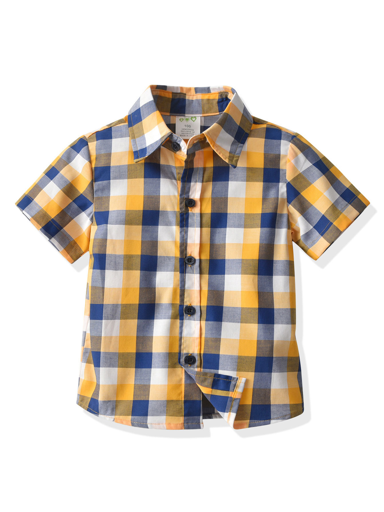 크로스 보더 2023 유럽과 미국 소년 여름 반팔 셔츠 격자 무늬 옷깃 단추 원피스 어린이 셔츠스토어 가기