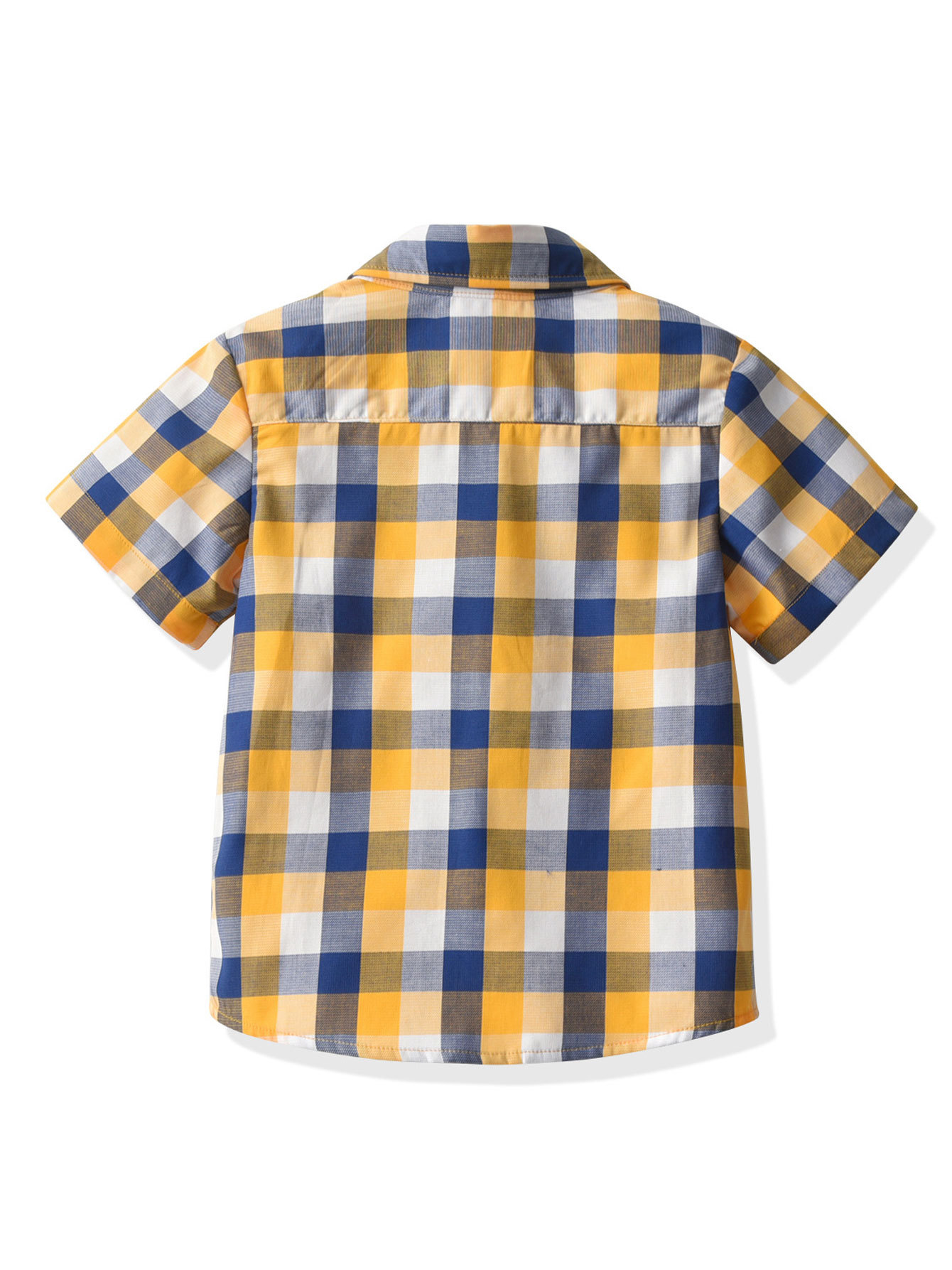 크로스 보더 2023 유럽과 미국 소년 여름 반팔 셔츠 격자 무늬 옷깃 단추 원피스 어린이 셔츠