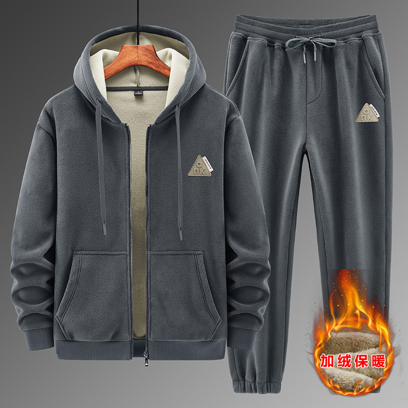 크로스 보더 겨울 새로운 기모 두꺼운 세트 남자의 램 벨벳 까마귀 면 바지 캐주얼 스포츠 따뜻한 세트스토어 가기