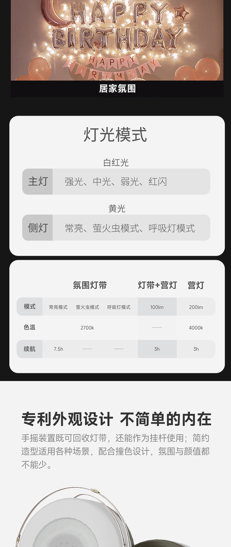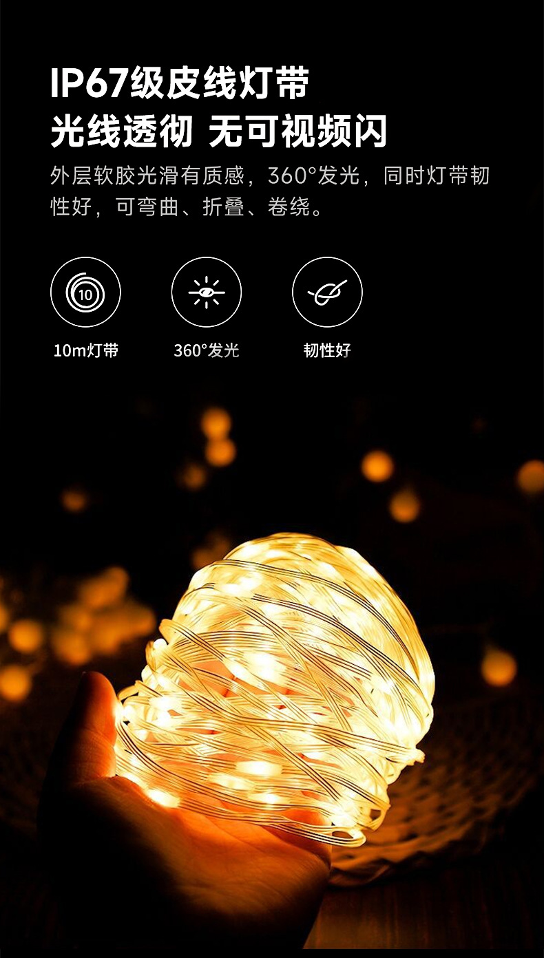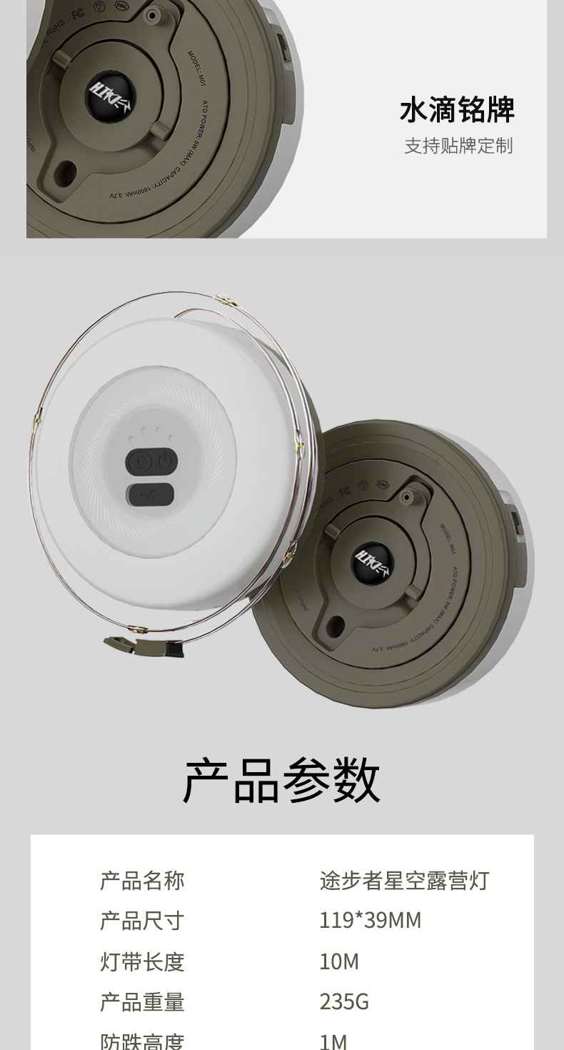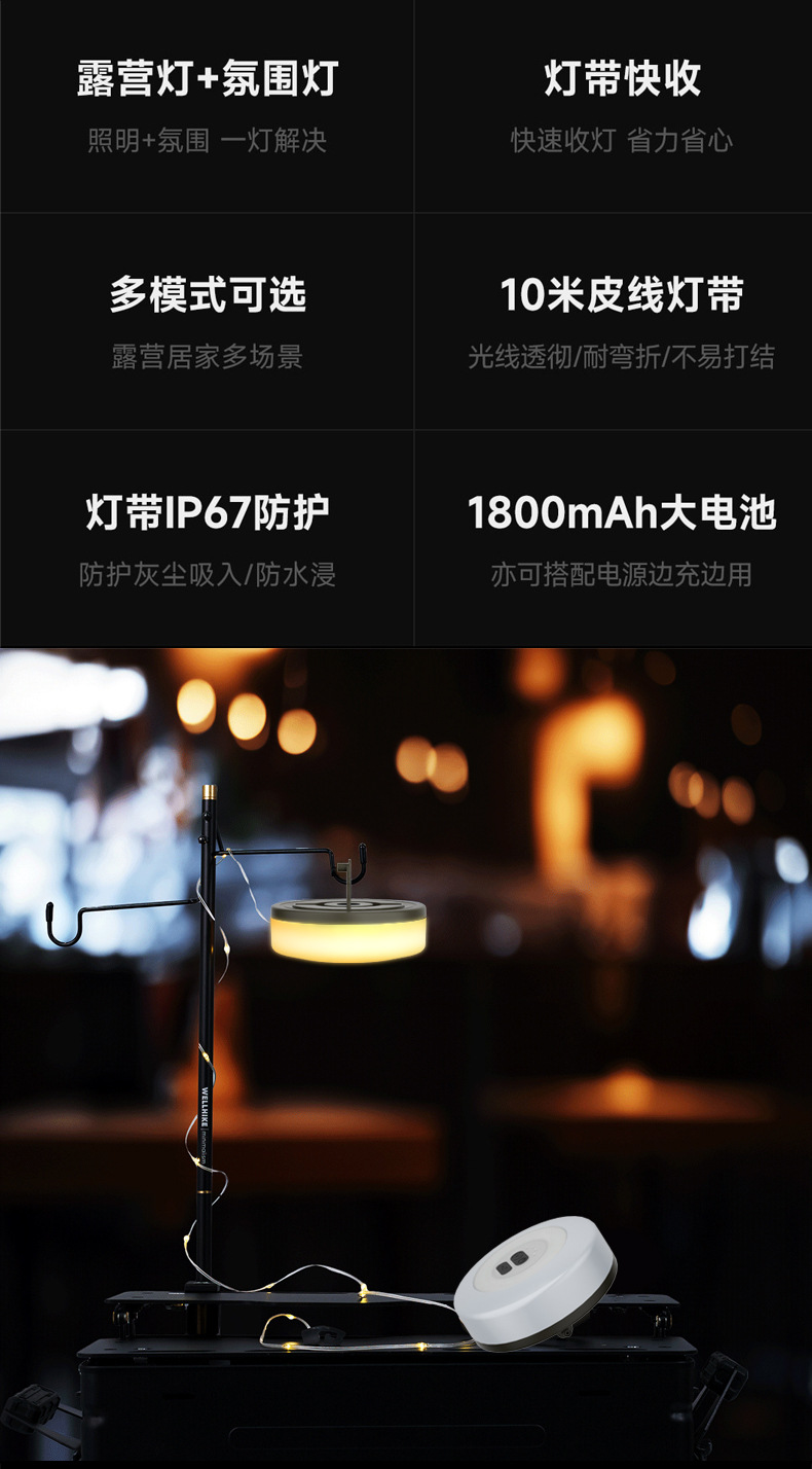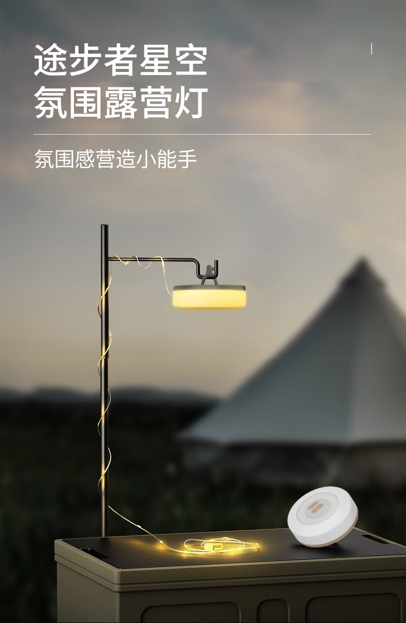 국경을 넘는 새로운 야외 캠핑 분위기 조명 LED 텐트 캠핑 라이트 스트링 장식 천막 컬러 라이트 스트링 줄자 보관