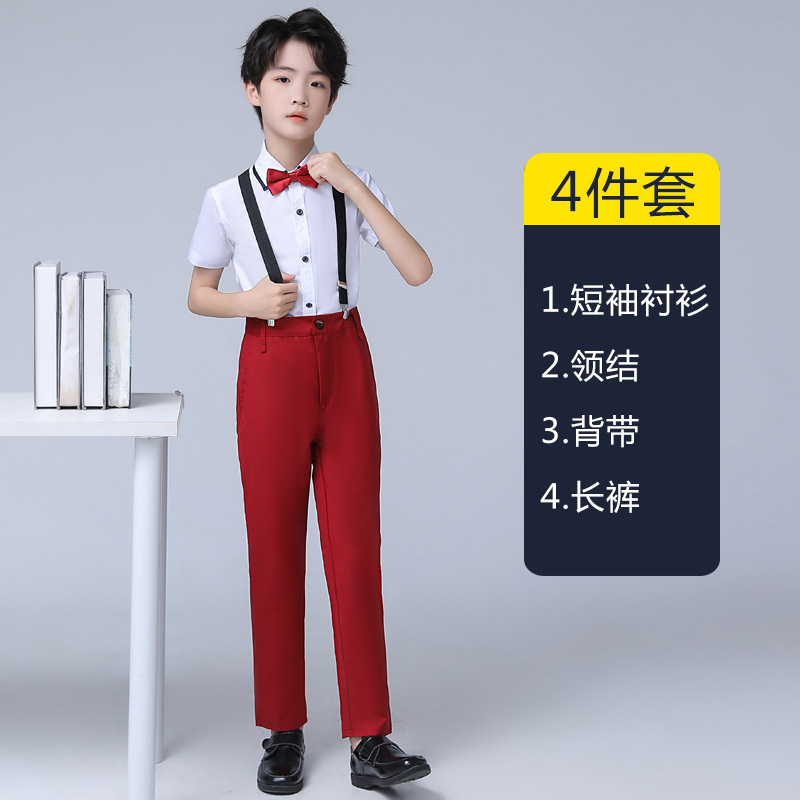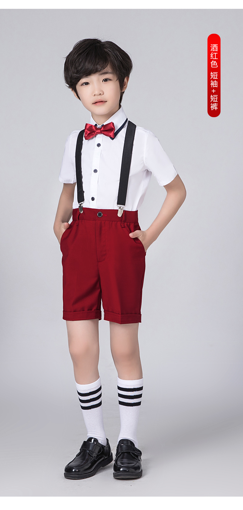 • 흰색 버건디 반팔 반바지 멜빵