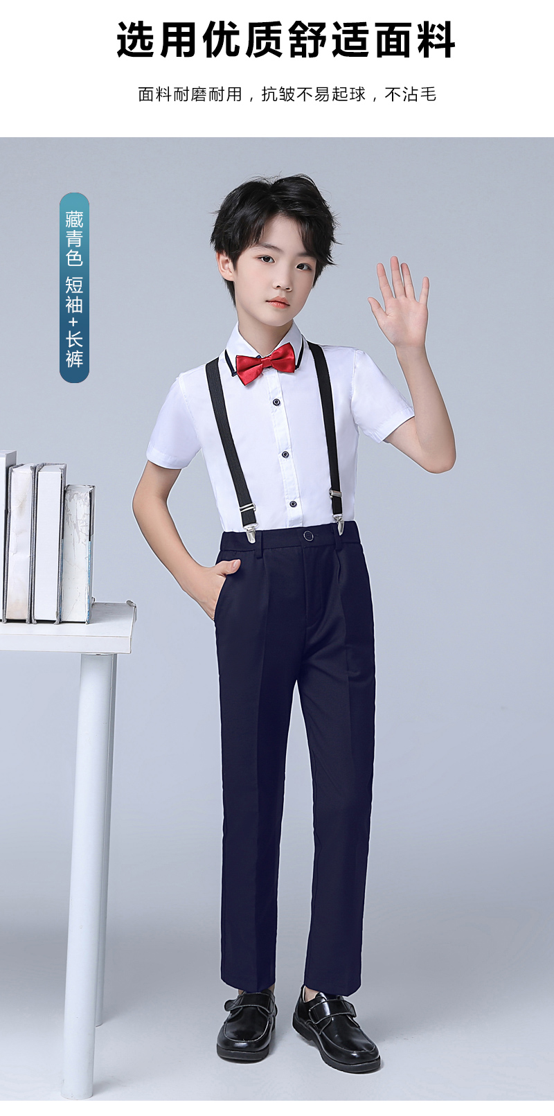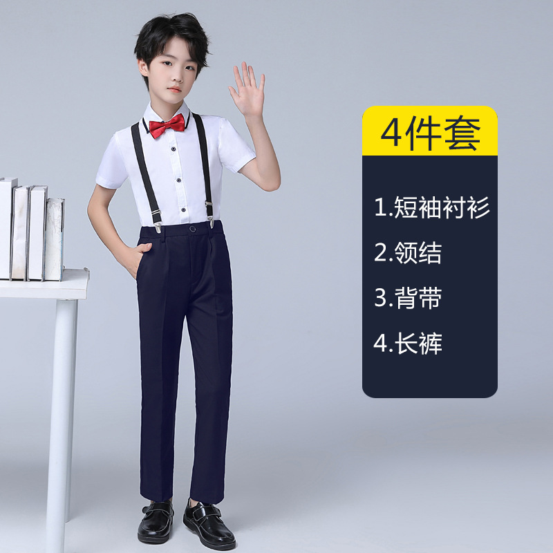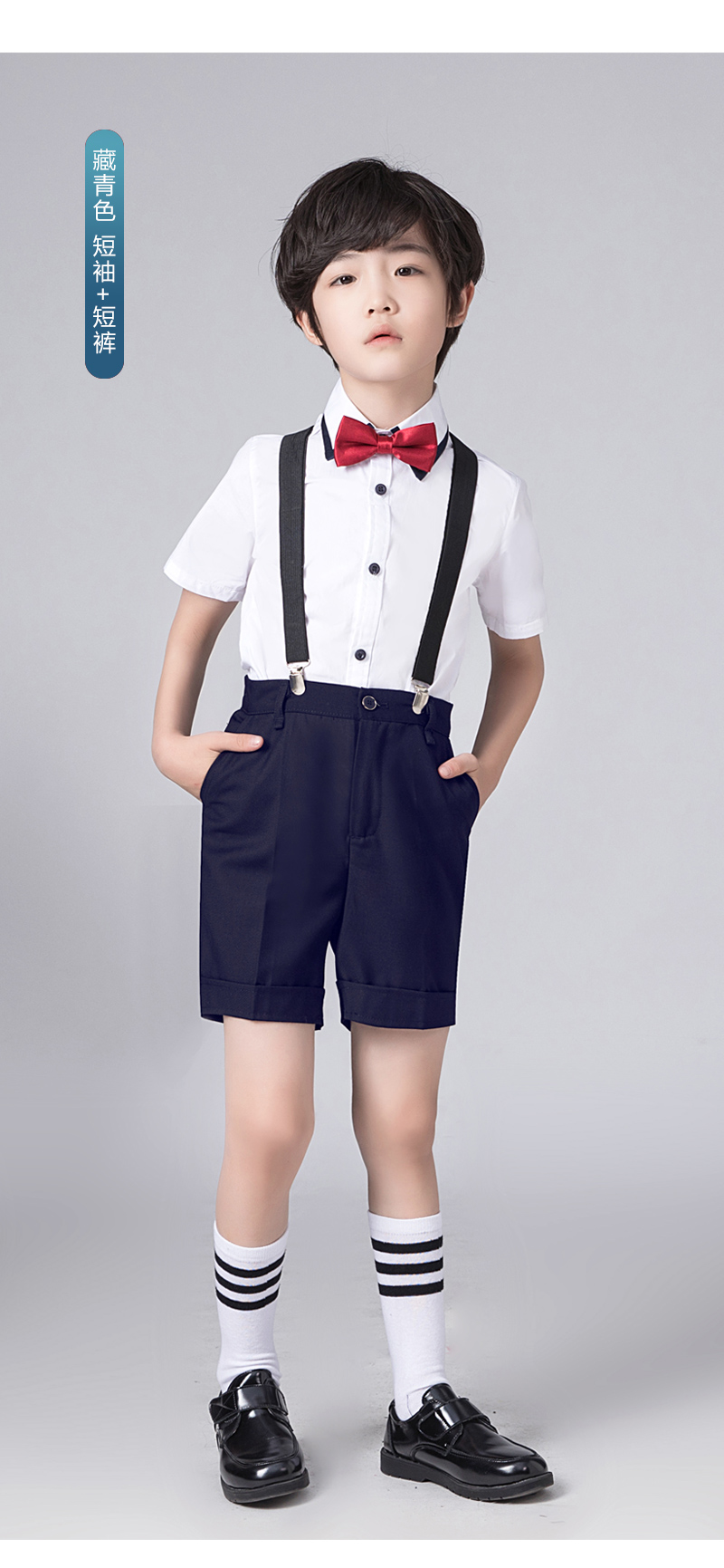 • 흰색 네이비 반팔 바지 멜빵