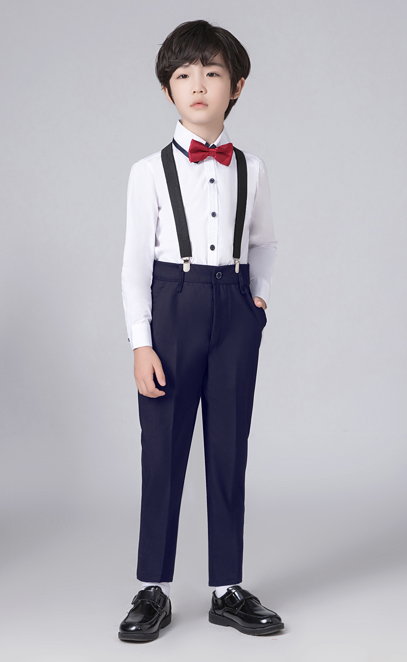 • 흰색 버건디 긴팔 바지 멜빵