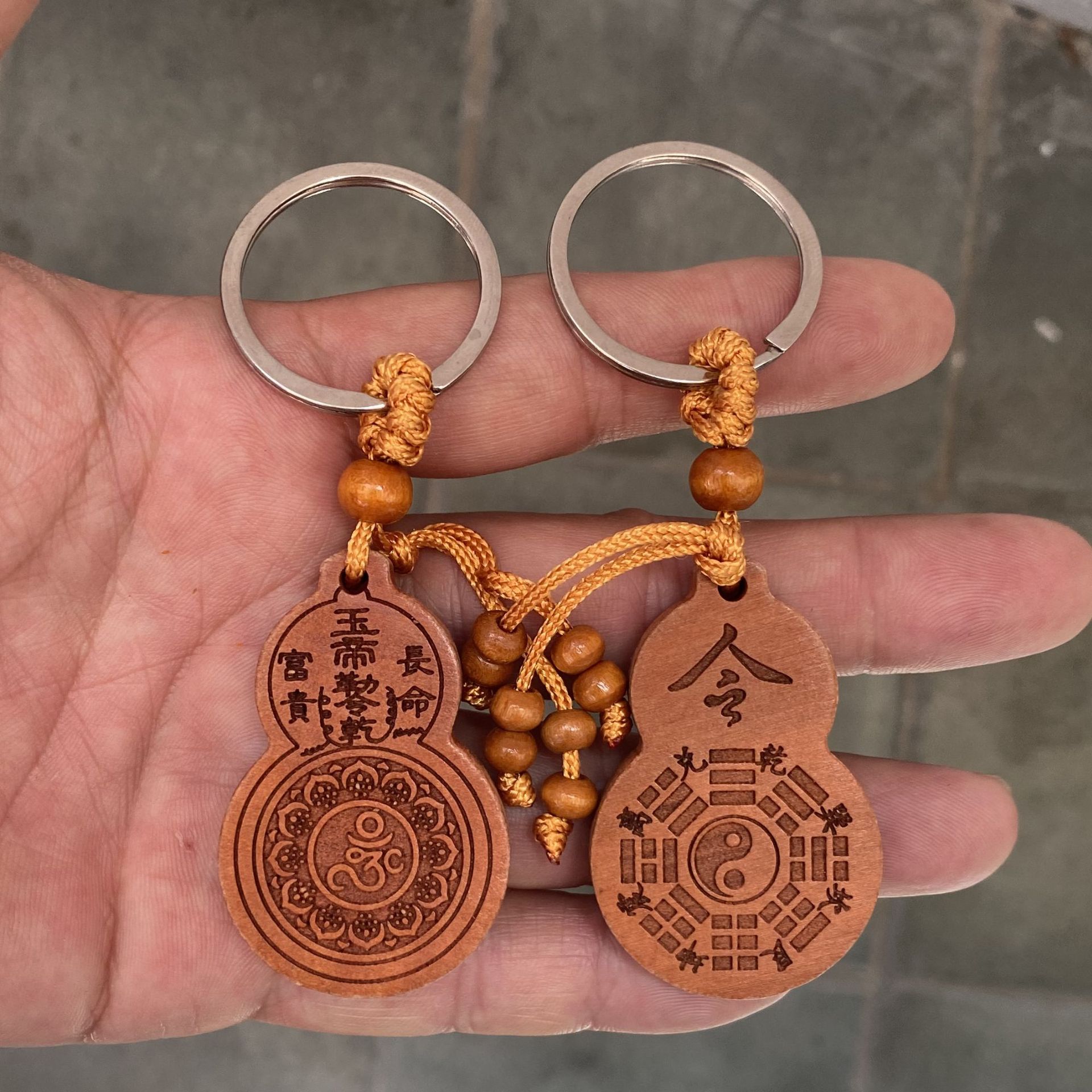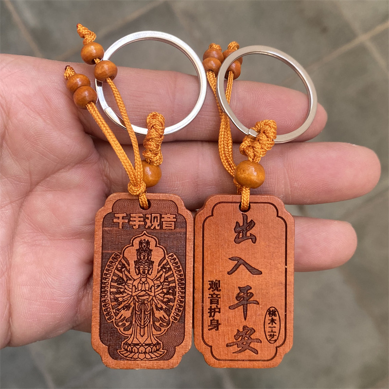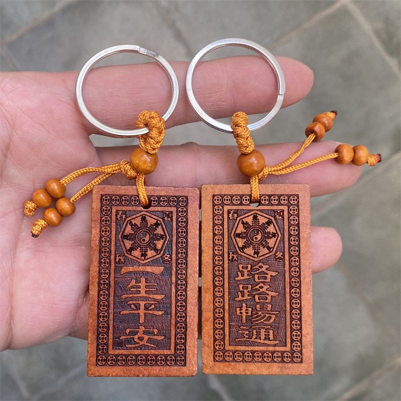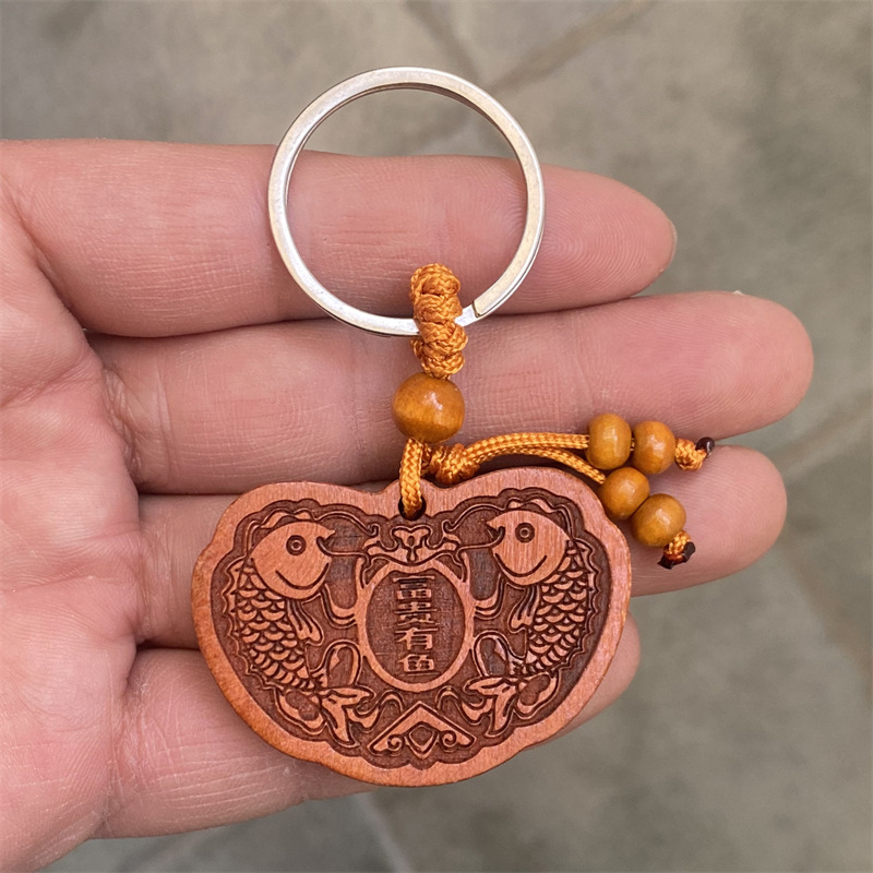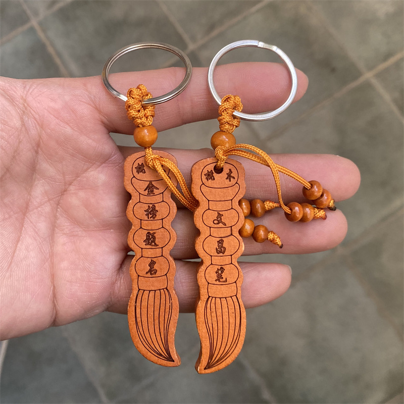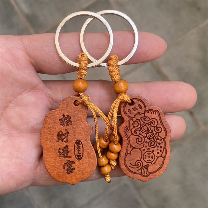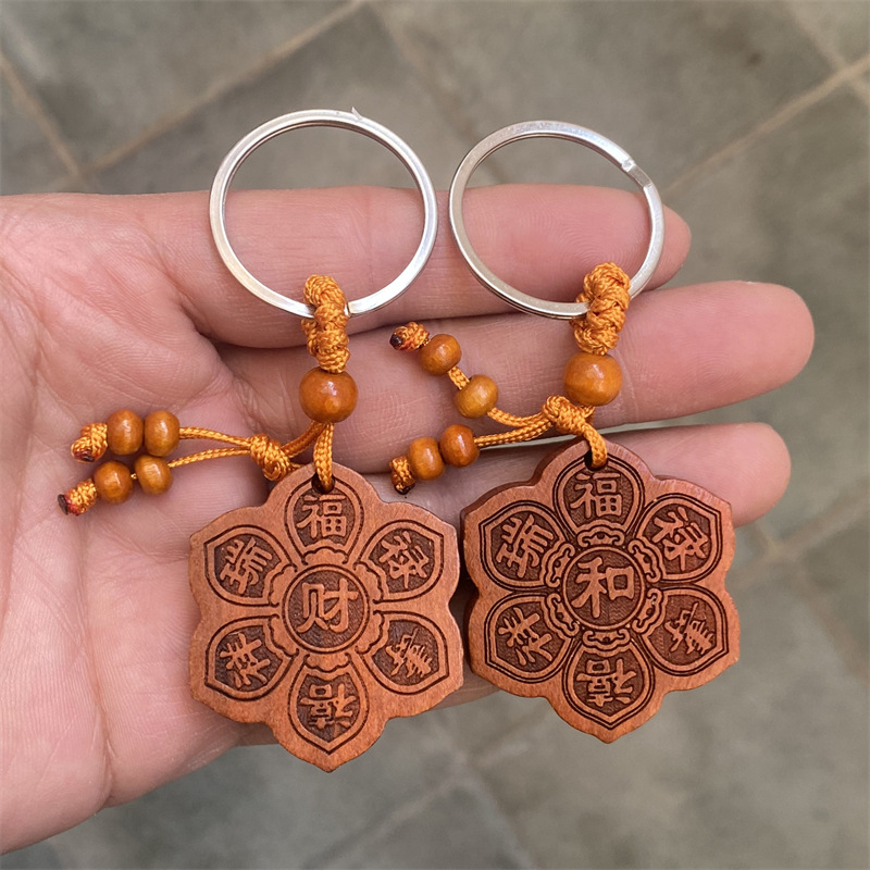 안전한 나무 공예품 커플 남성과 여성의 작은 선물을 통해 상서로운 복숭아 나무 자동차 열쇠 고리 펜던트