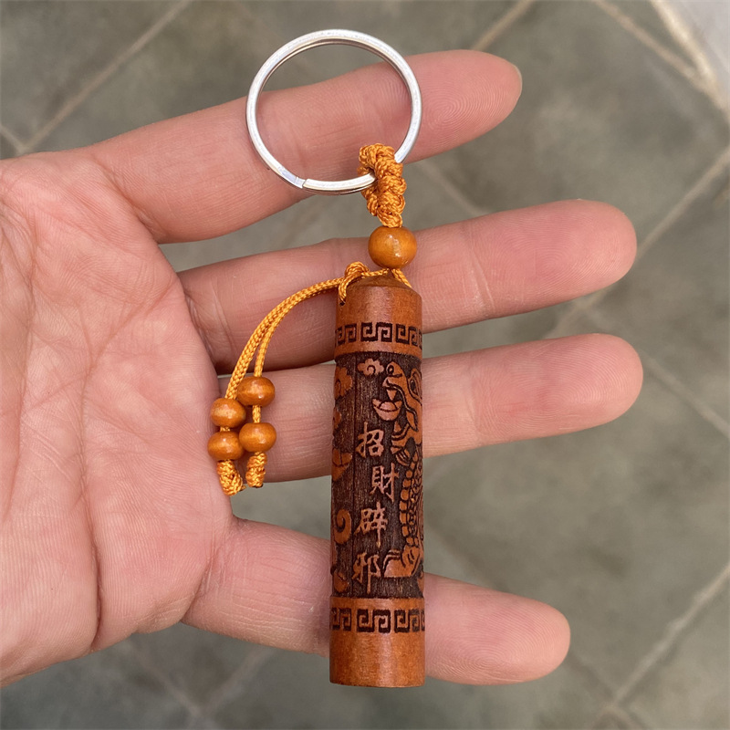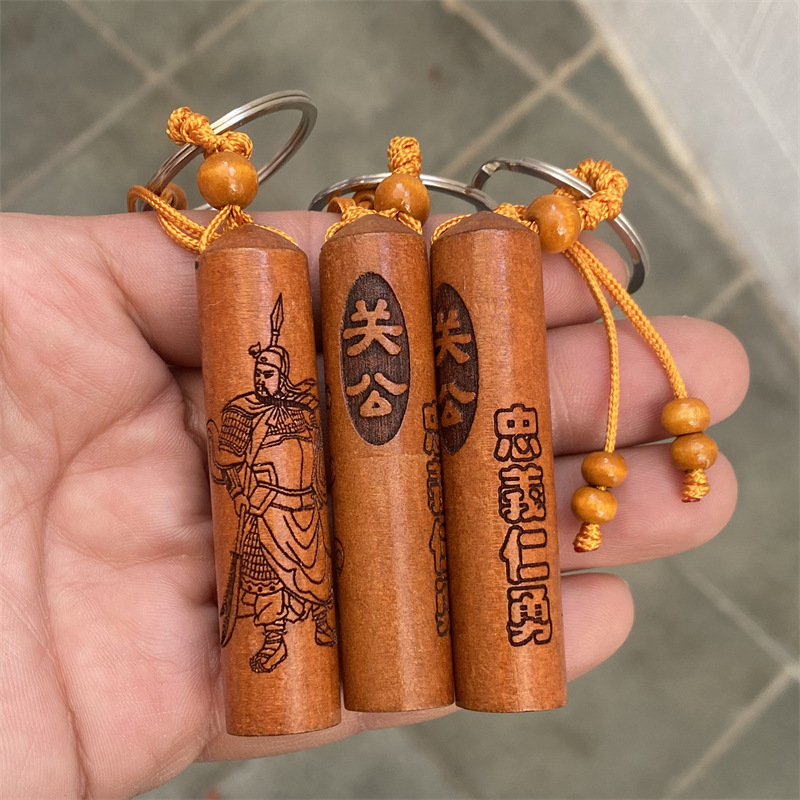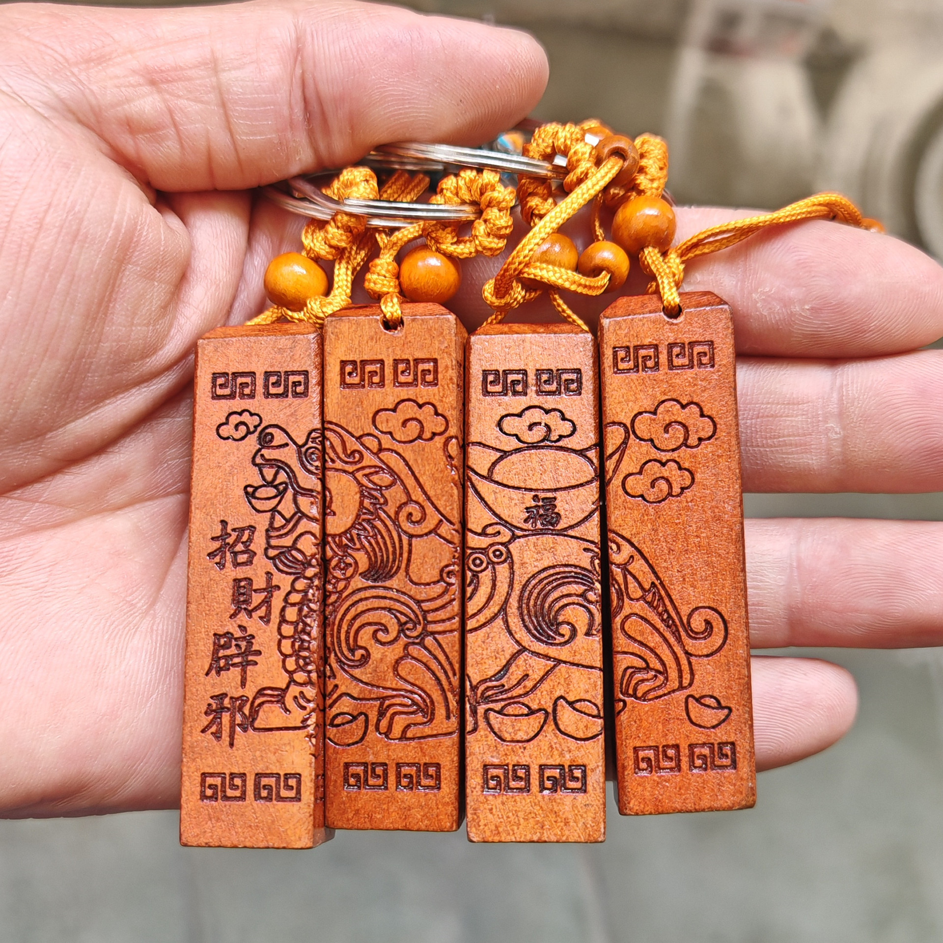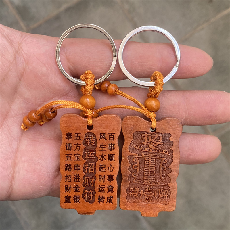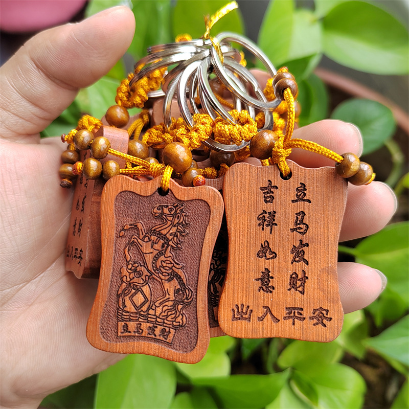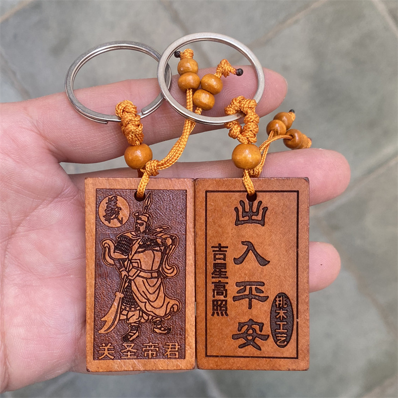 안전한 나무 공예품 커플 남성과 여성의 작은 선물을 통해 상서로운 복숭아 나무 자동차 열쇠 고리 펜던트