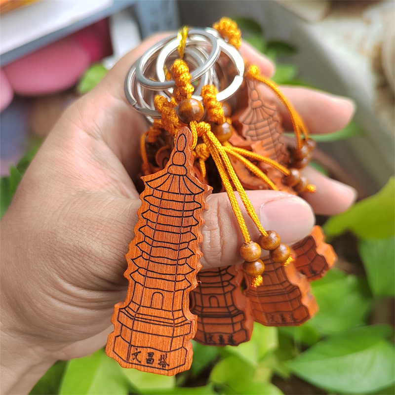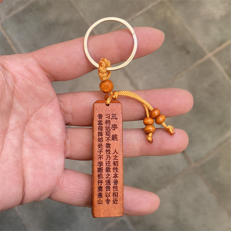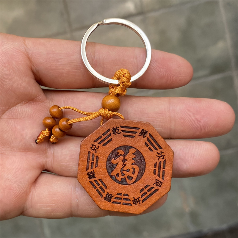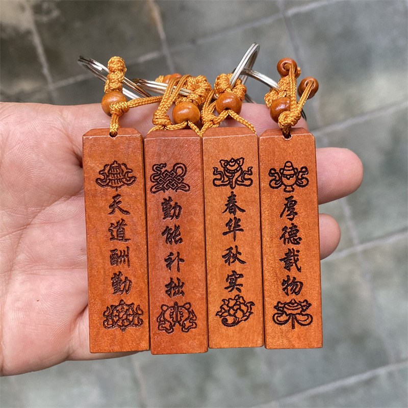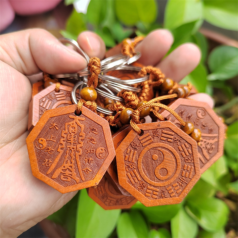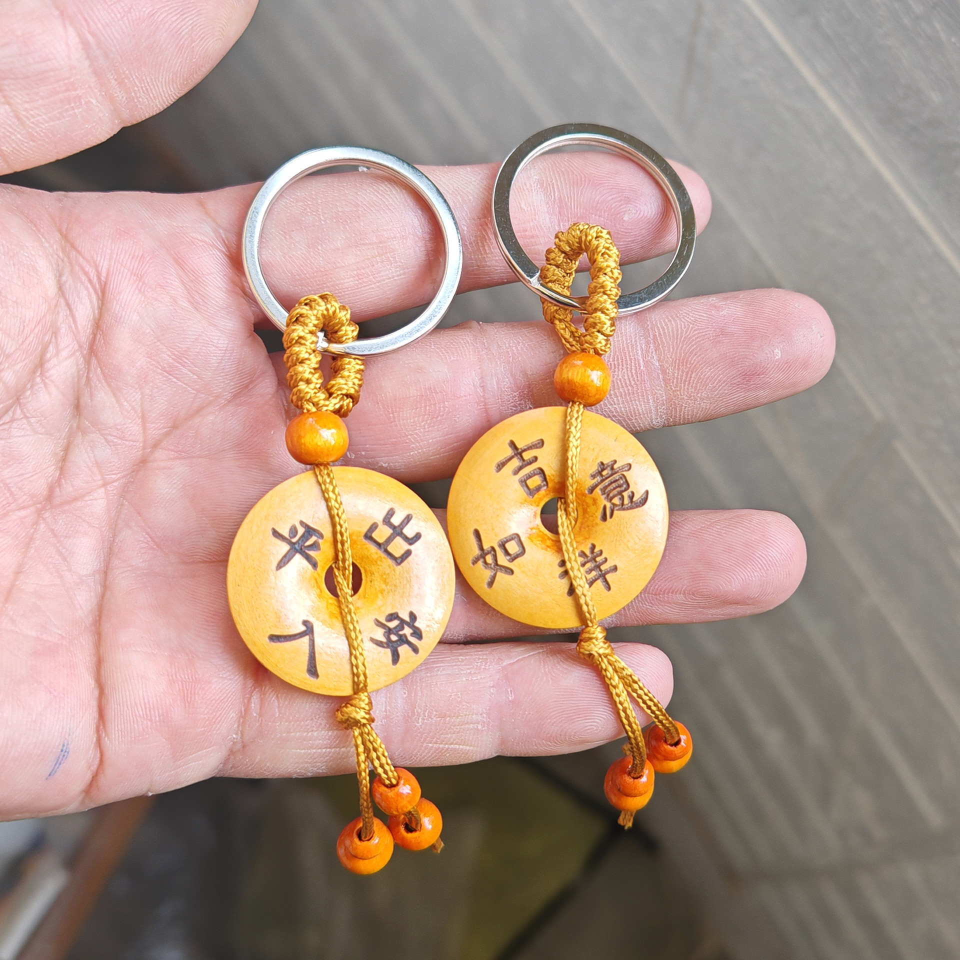 안전한 나무 공예품 커플 남성과 여성의 작은 선물을 통해 상서로운 복숭아 나무 자동차 열쇠 고리 펜던트