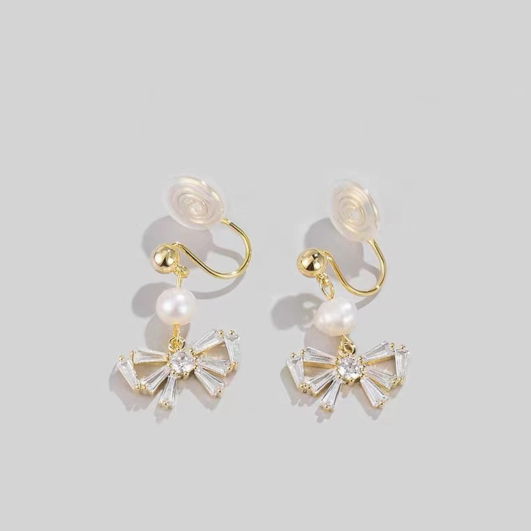 귀 구멍이없는 나비 귀걸이 모기 향 플레이트 이어 클립 여성용 한국식 부드러운 2023 새로운 패션 가을과 겨울 진주 귀걸이