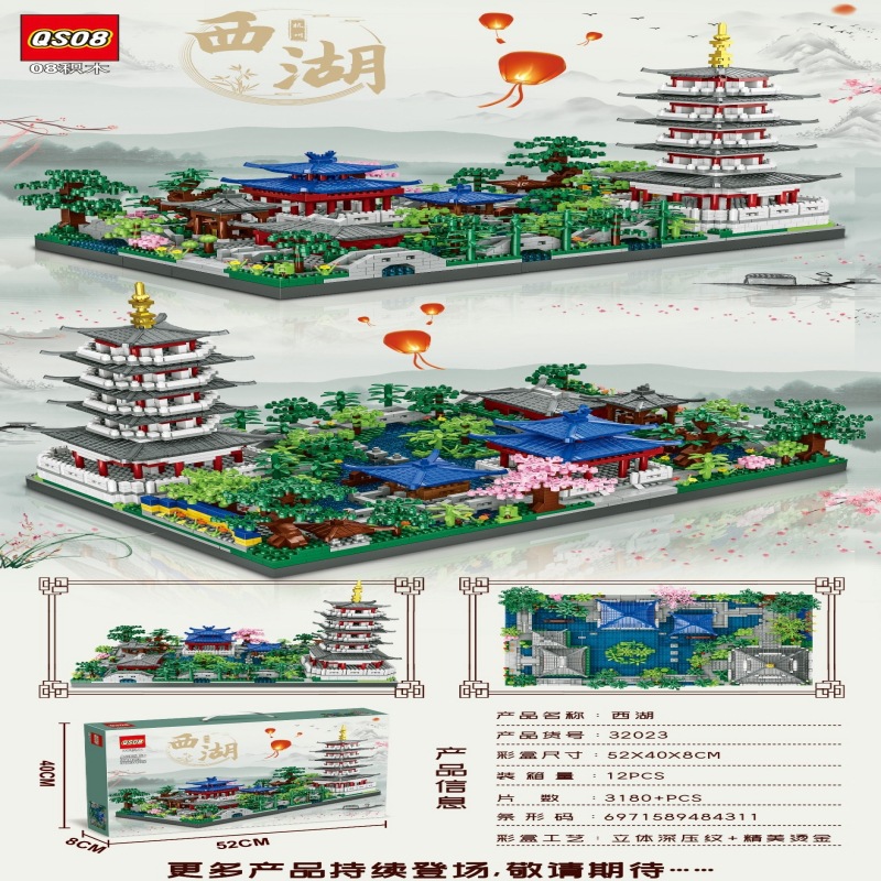 어린이 장난감 모자이크 장난감 모델 웨스트 호수 복숭아 꽃 연못 크리스탈 팰리스 성 요정 파빌리온 마이크로 풍경 모자이크 빌딩 블록