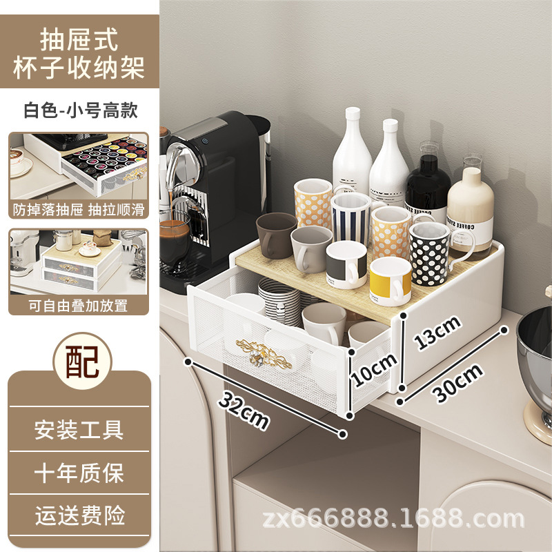 컵 보관 랙 거실 데스크탑 물 컵 찻잔 배치 랙 커피 머신베이스 서랍 캡슐 보관 랙
