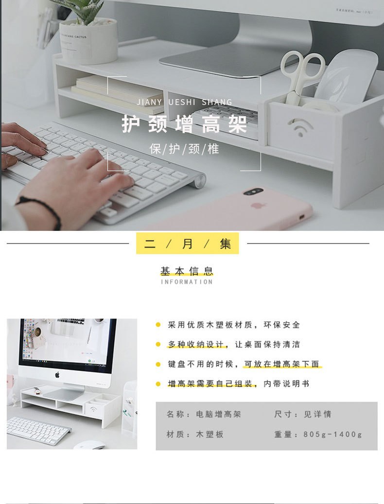 데스크탑 컴퓨터 모니터 높이 랙 사무실 노트북 패드 높은 서랍형 다기능 스토리지 랙스토어 가기