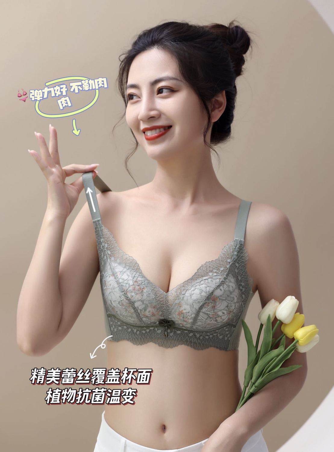 강철 반지 속옷이없는 비 자성 여성용 작은 가슴 큰 상단 꽃 레이스 브래지어 액세서리 유방 조절 브래지어스토어 가기