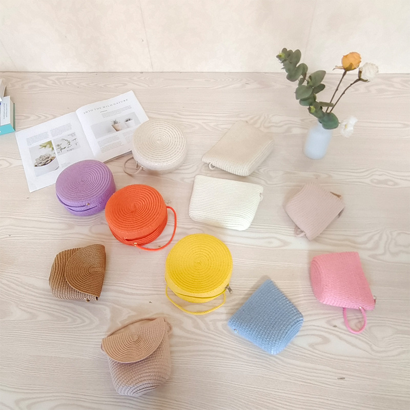 다양한 종류의 즉시 출고 가능한 밀짚 가방, DIY 여아용 크로스백, 숄더백, 동전 지갑, 원형 가방, 캐주얼하고 다용도로 활용 가능