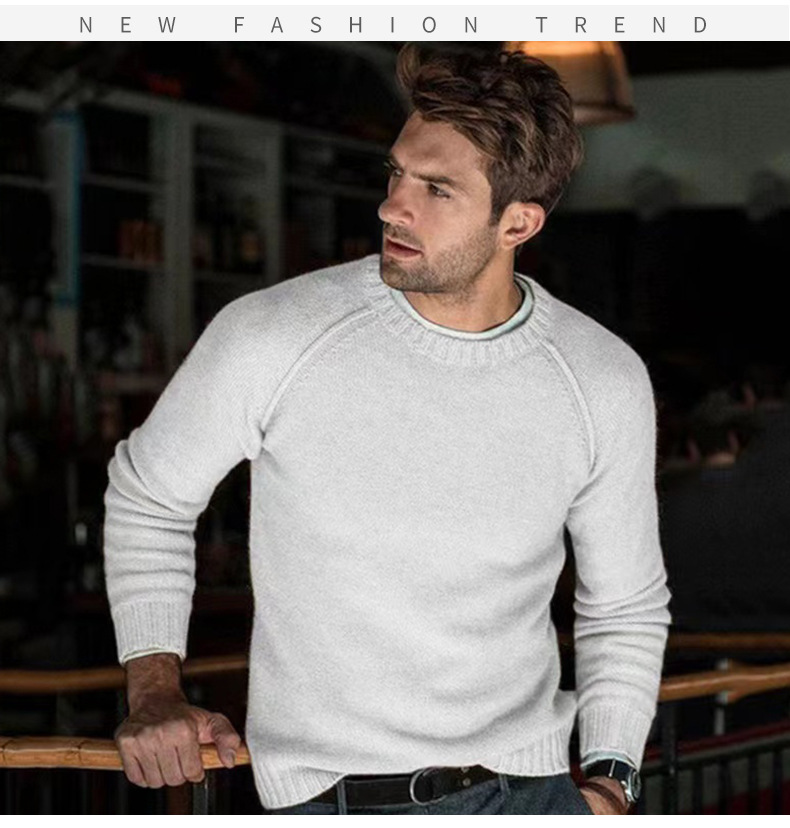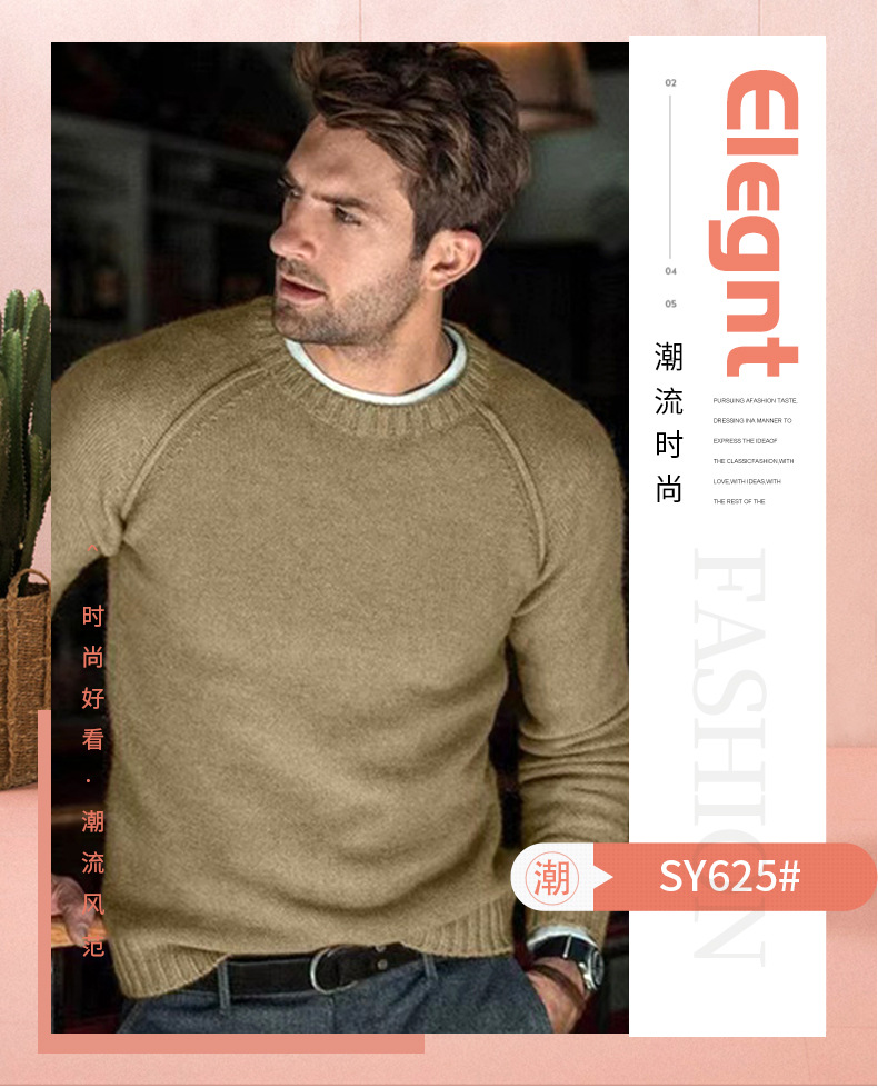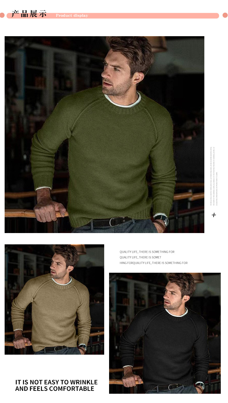 아마존 2024 가을 겨울 신작 남성 크로스 보더 캐주얼 패션 니트 솔리드 컬러 스웨터