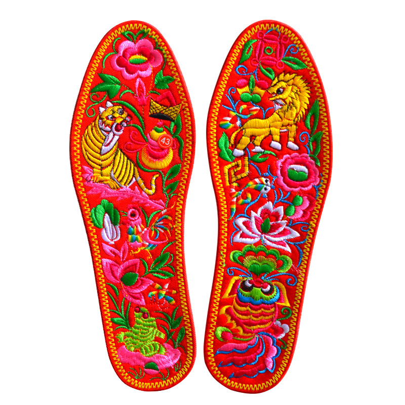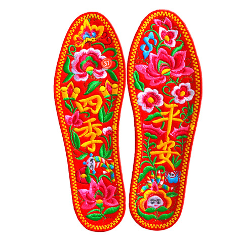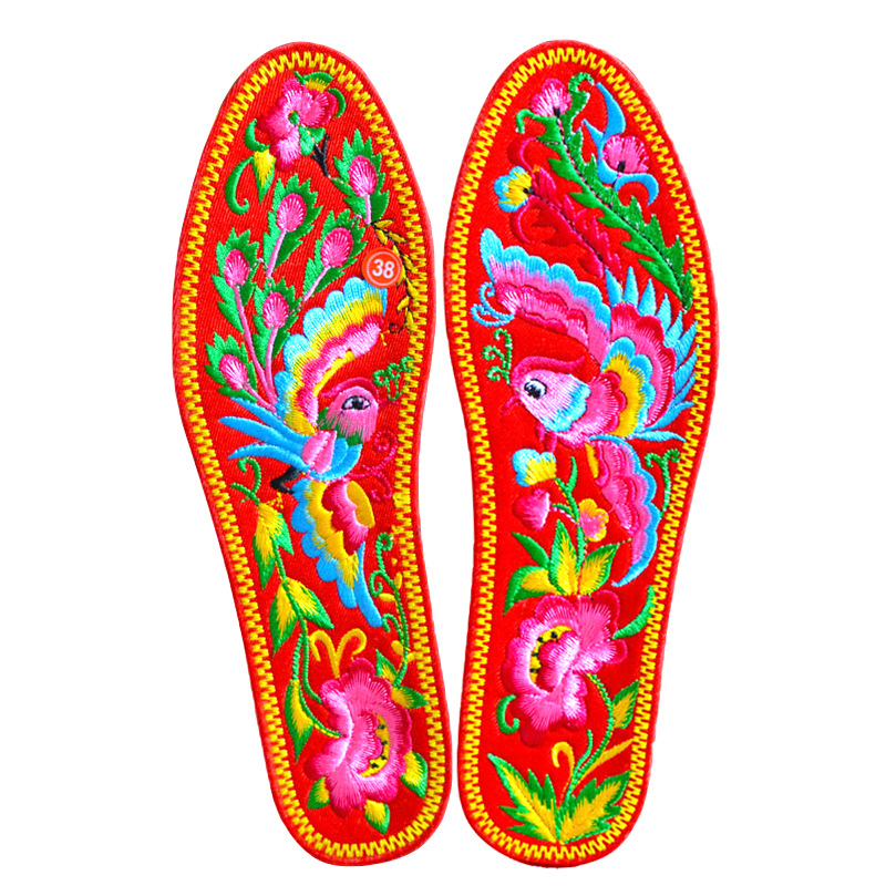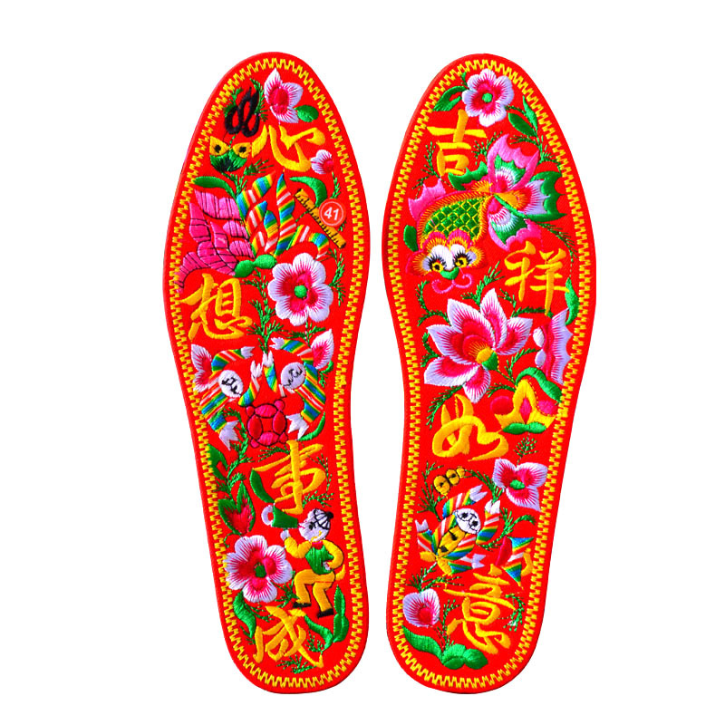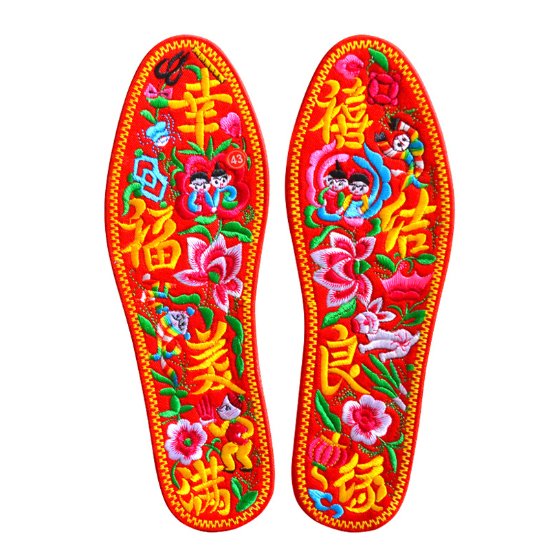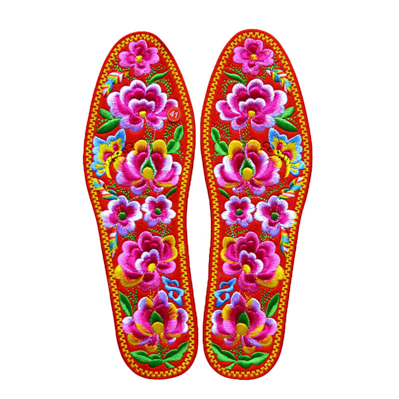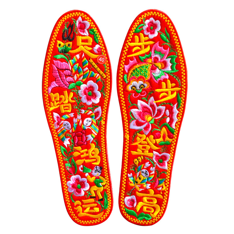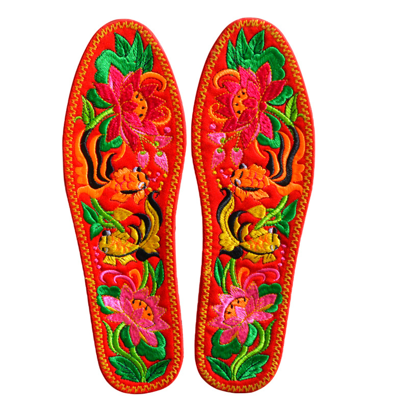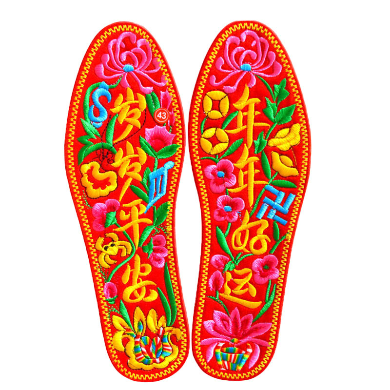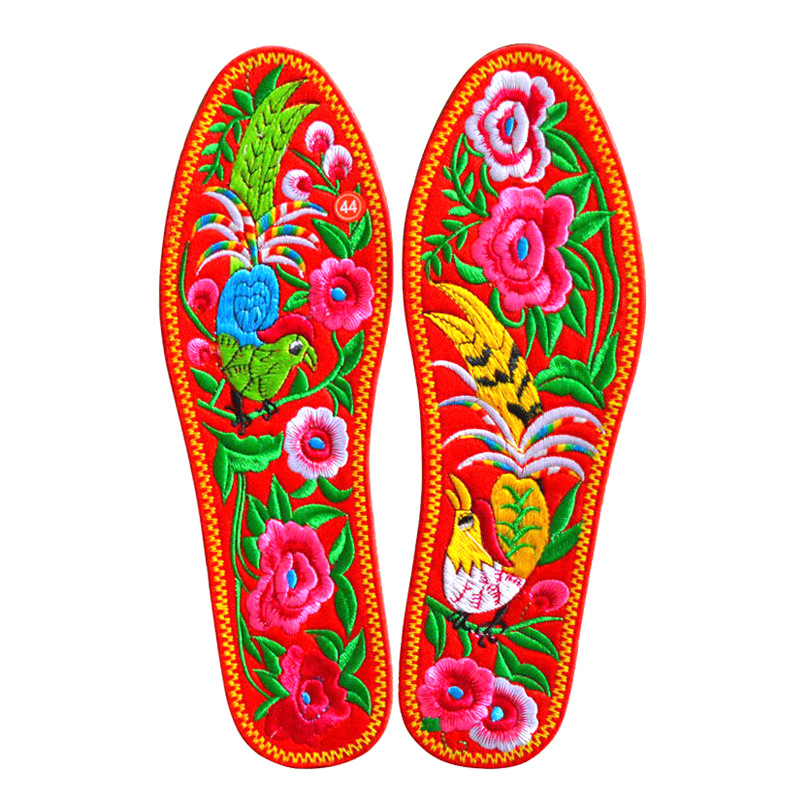 자수 레드 옐로우 세미 핸드메이드 면 자수 깔창 완성 된 남성 및 여성용 웨딩 크로스 스티치 통기성 백 쌍 무료 배송스토어 가기