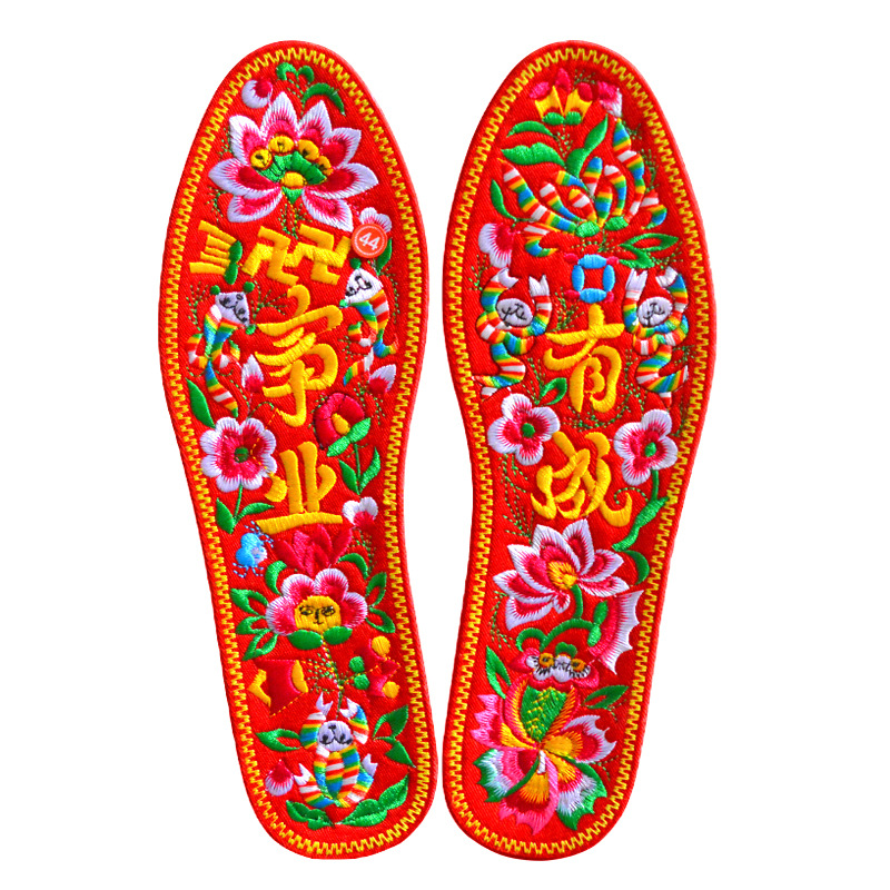 자수 레드 옐로우 세미 핸드메이드 면 자수 깔창 완성 된 남성 및 여성용 웨딩 크로스 스티치 통기성 백 쌍 무료 배송