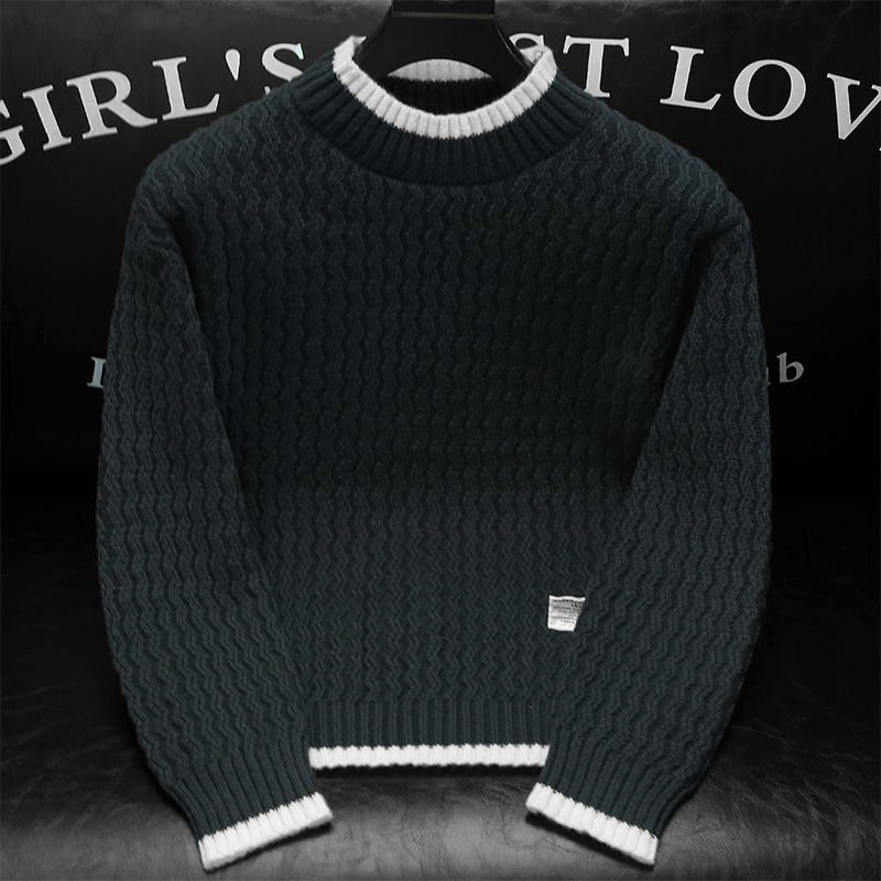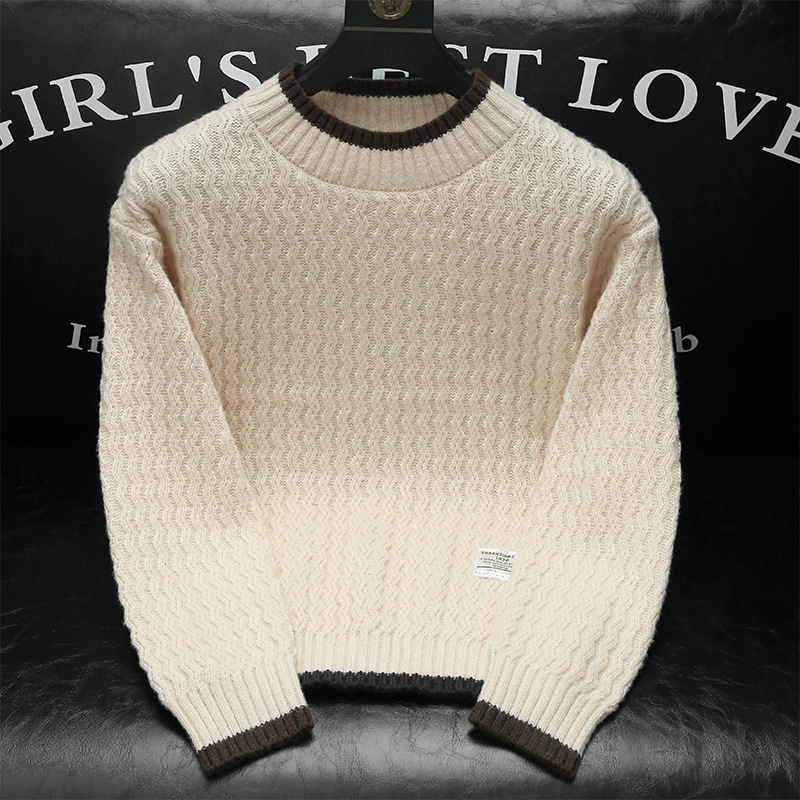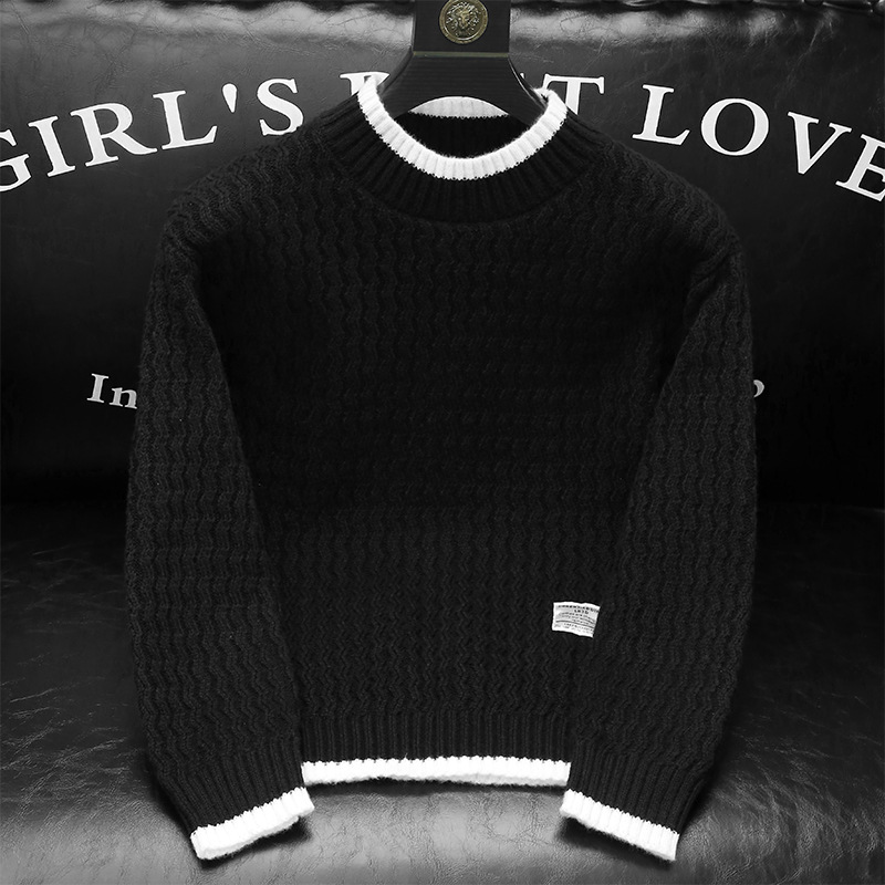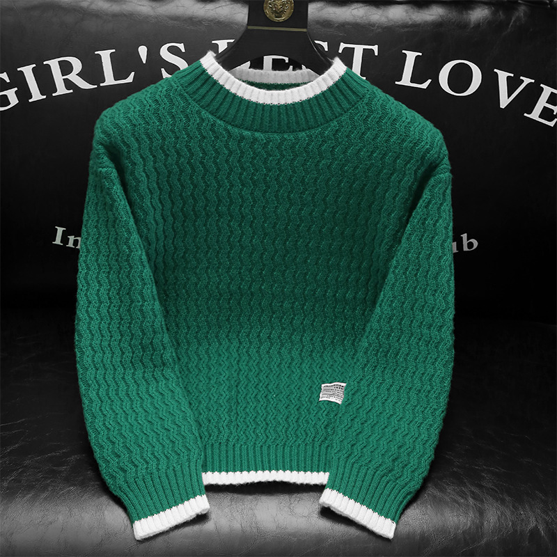 남성용 가을과 겨울 캐주얼 스웨터 트렌디 한 단색 스웨터 모든 매치 라운드 넥 스웨터 남성용 느슨한 편안한 탑