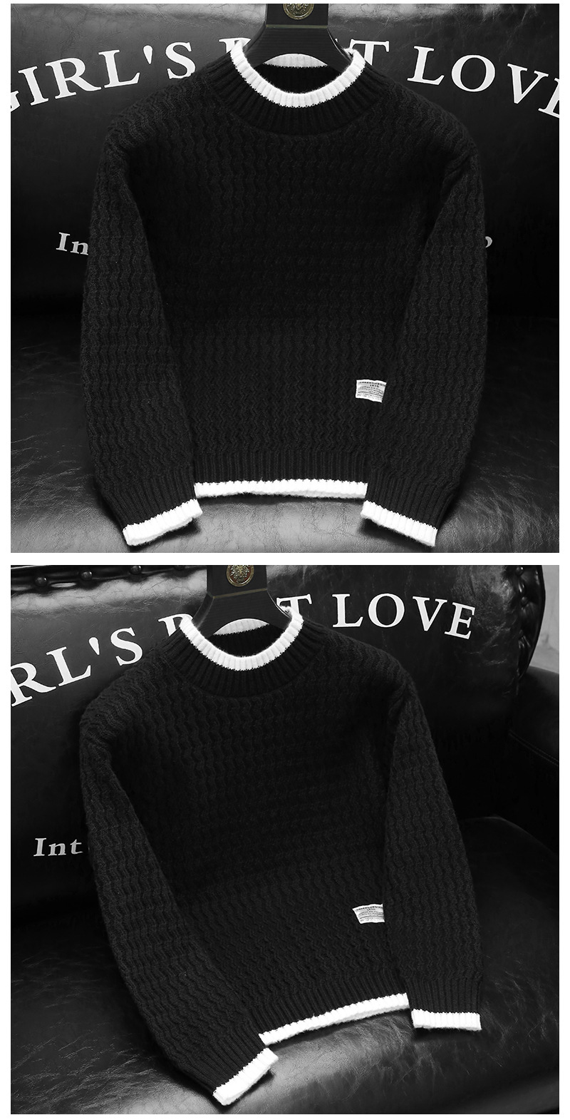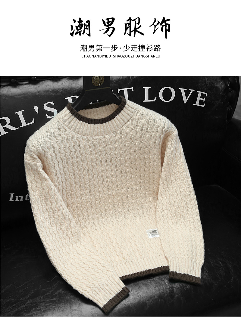 남성용 가을과 겨울 캐주얼 스웨터 트렌디 한 단색 스웨터 모든 매치 라운드 넥 스웨터 남성용 느슨한 편안한 탑스토어 가기
