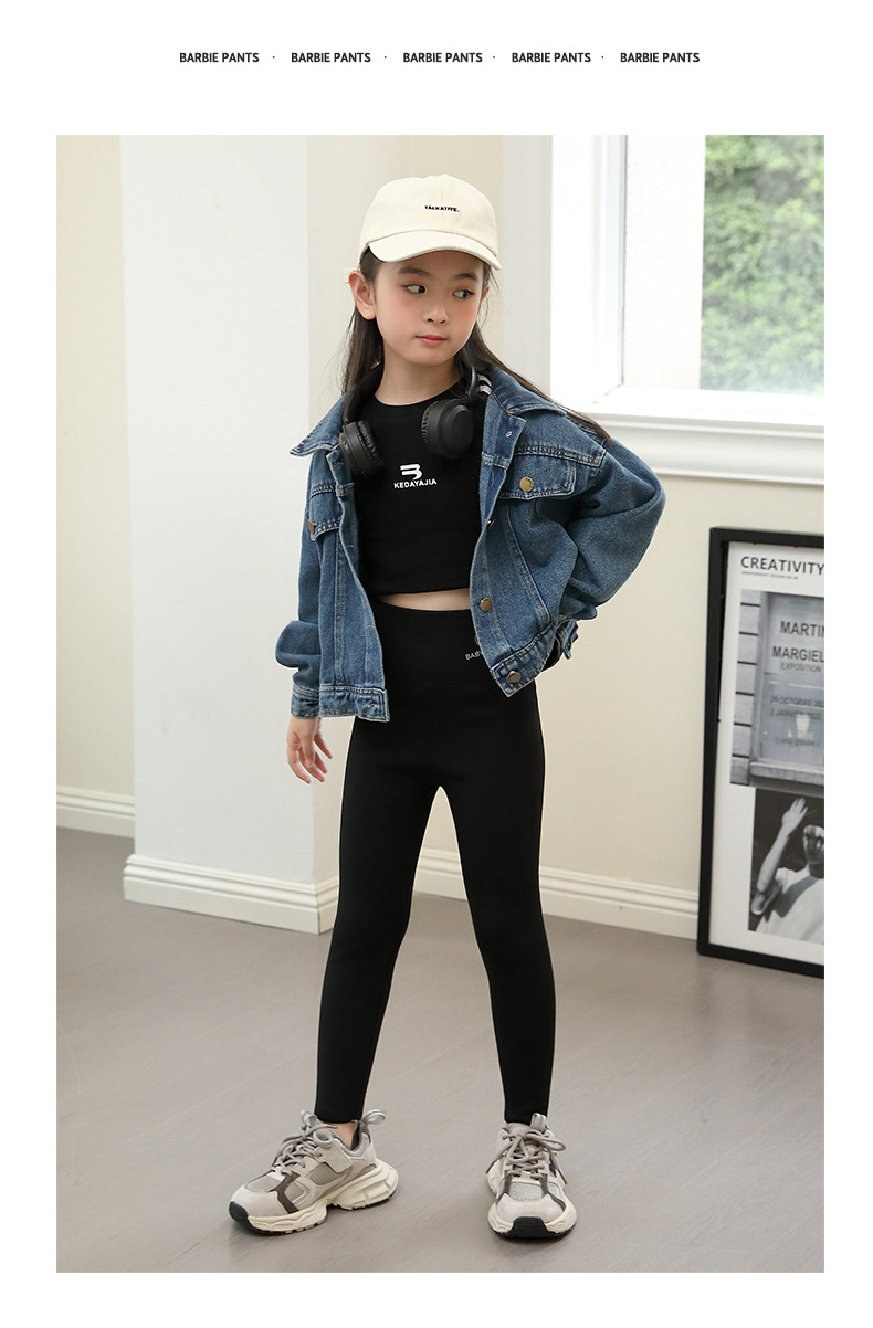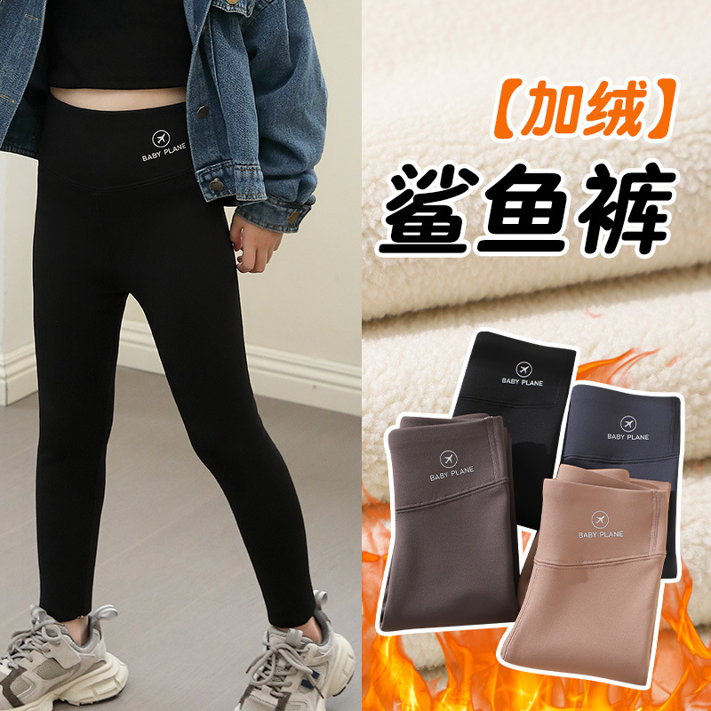 여아 기모 레깅스 2023 가을/겨울 어린이 상어 바지 큰 어린이 두꺼운 바지 스트레치 매직 바지 9 포인트스토어 가기