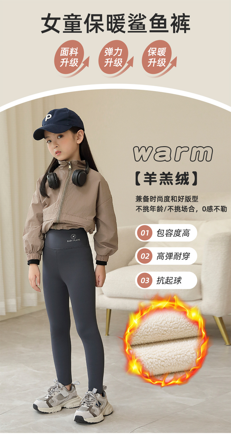 여아 기모 레깅스 2023 가을/겨울 어린이 상어 바지 큰 어린이 두꺼운 바지 스트레치 매직 바지 9 포인트