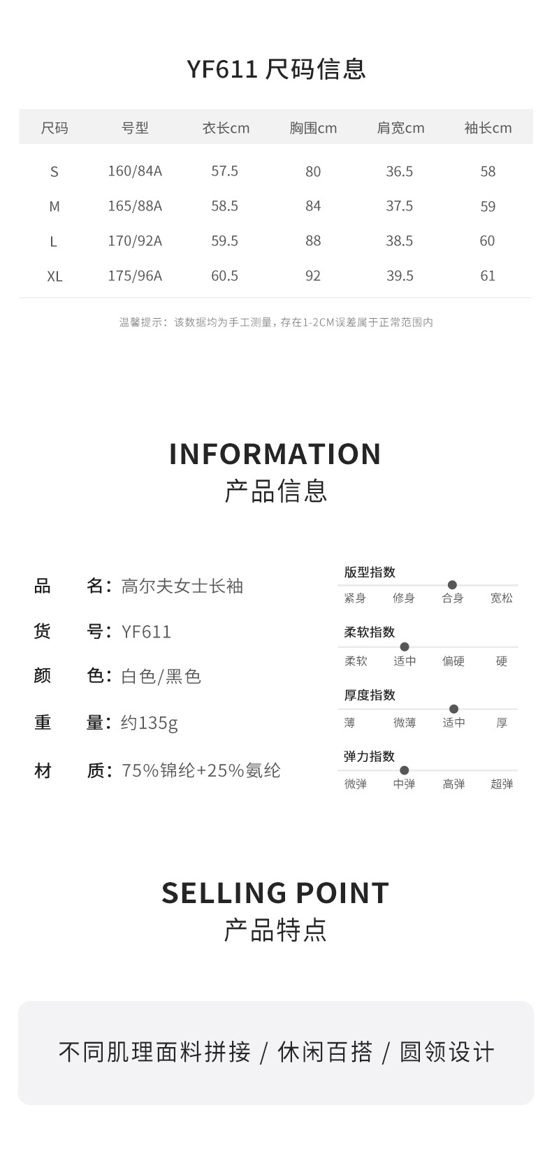 特点V型领设计,展现了女性的优雅和活力;高尔夫功能面料,透气舒适。