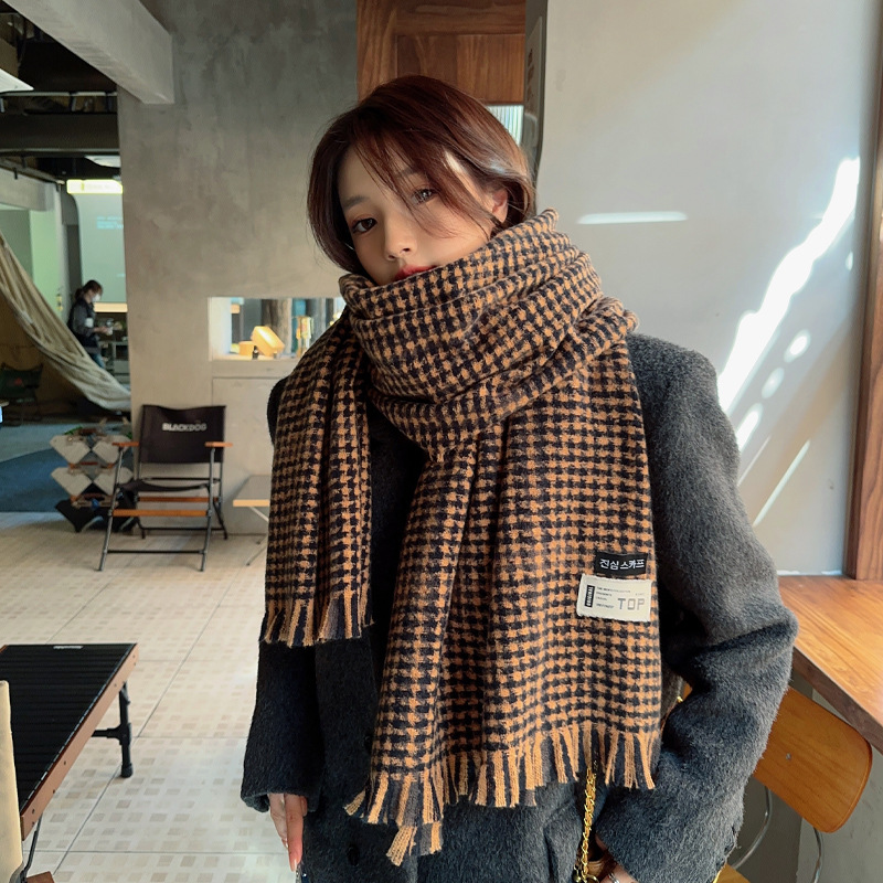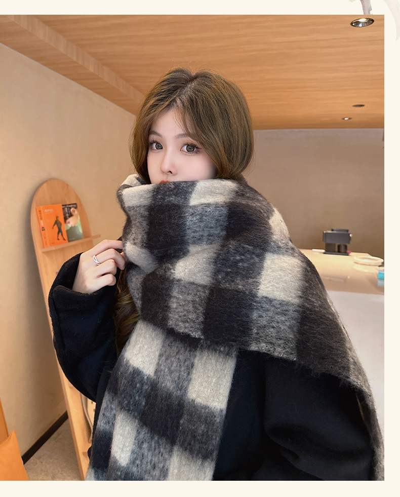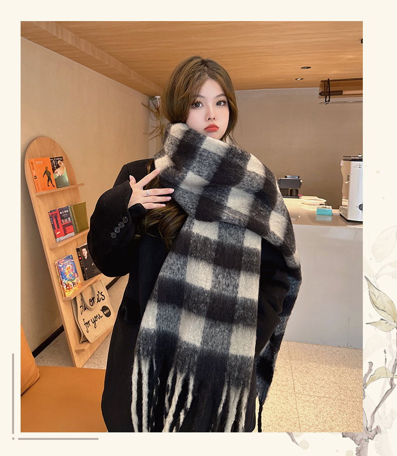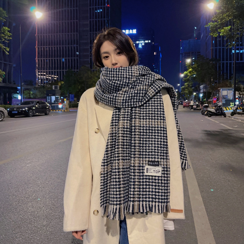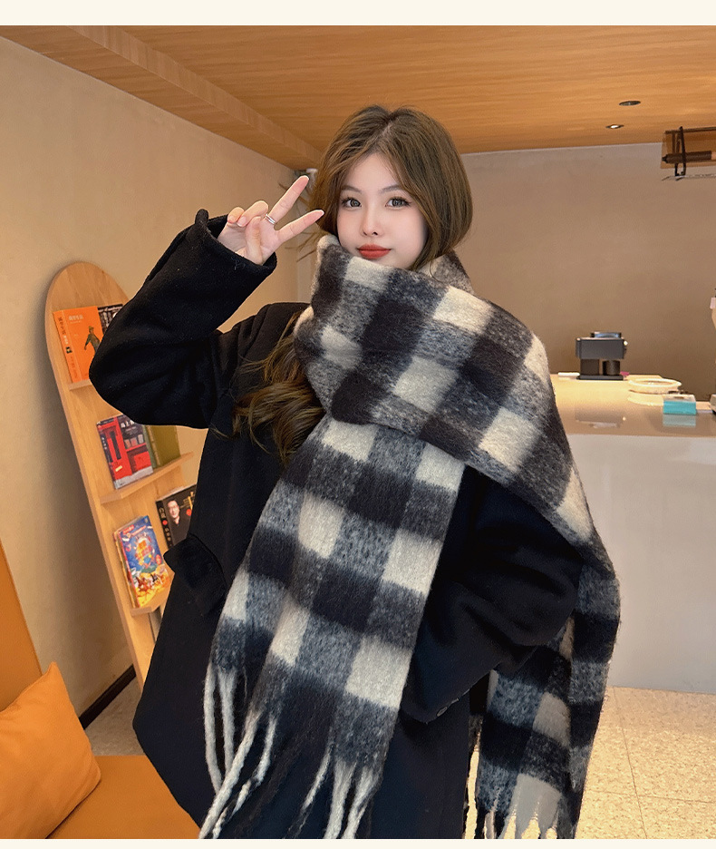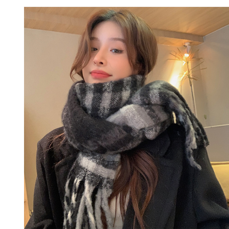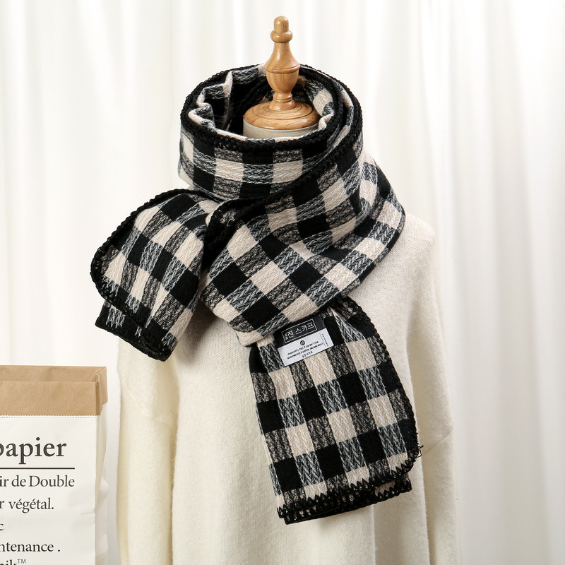 새로운 패션 한국 다목적 흑백 격자 무늬 스카프 겨울 따뜻한 두꺼운 학생 캐시미어 스카프스토어 가기