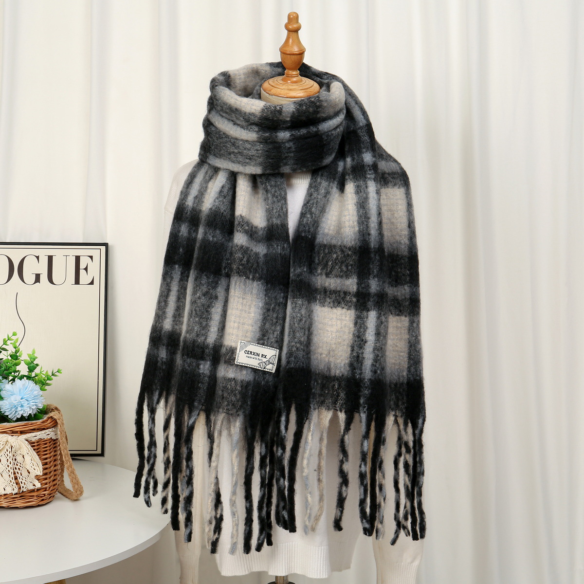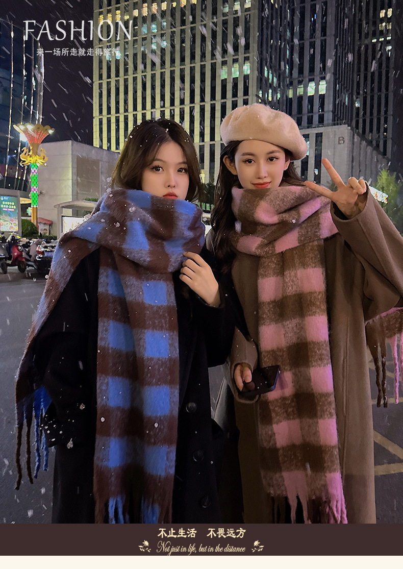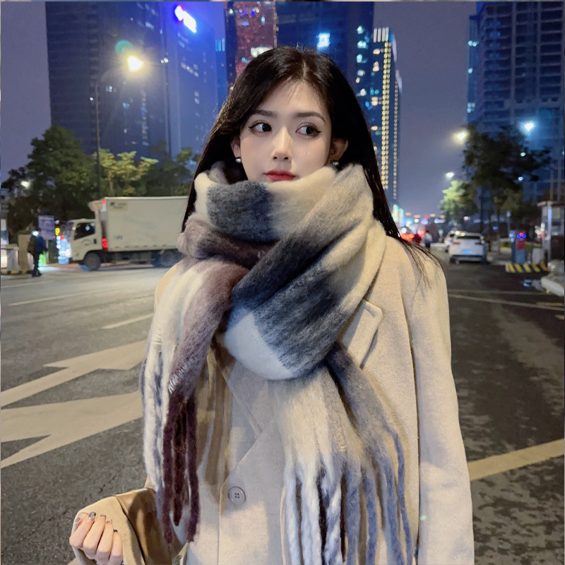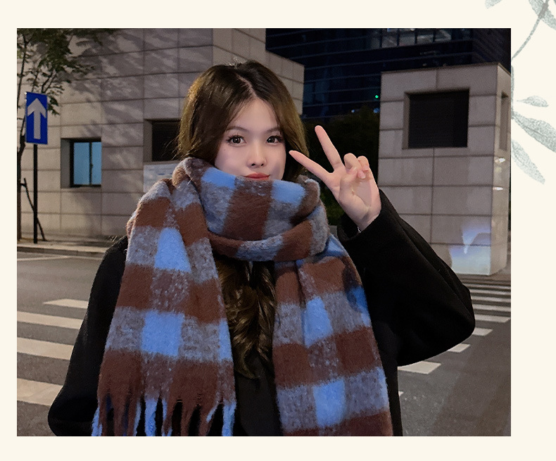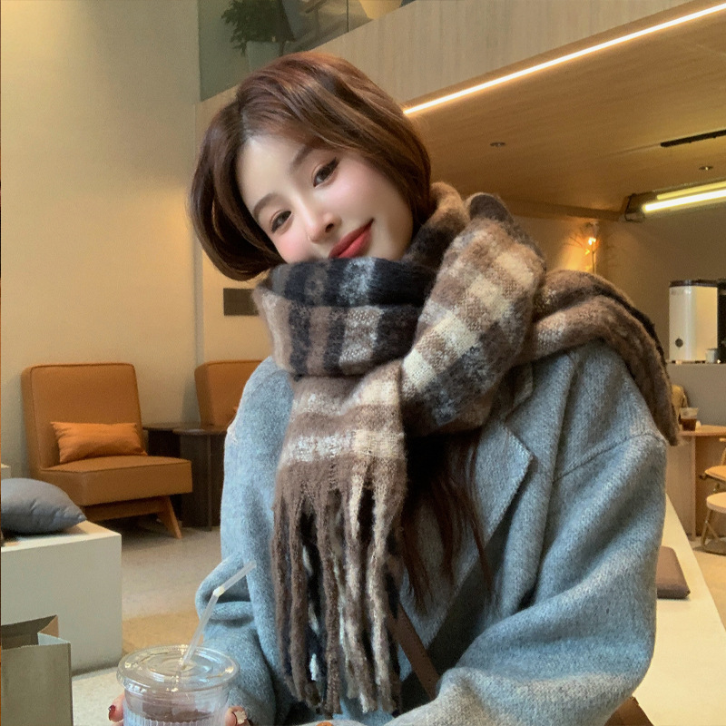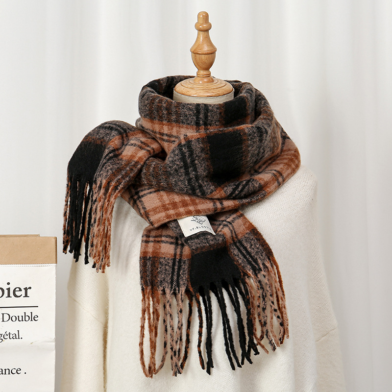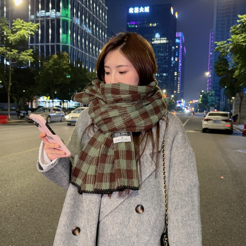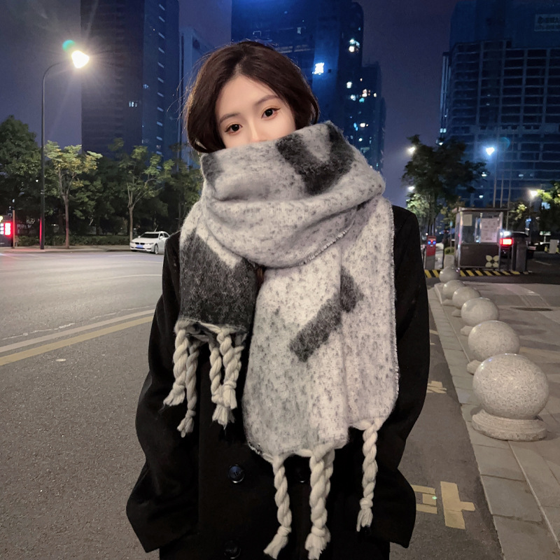 새로운 패션 한국 다목적 흑백 격자 무늬 스카프 겨울 따뜻한 두꺼운 학생 캐시미어 스카프스토어 가기