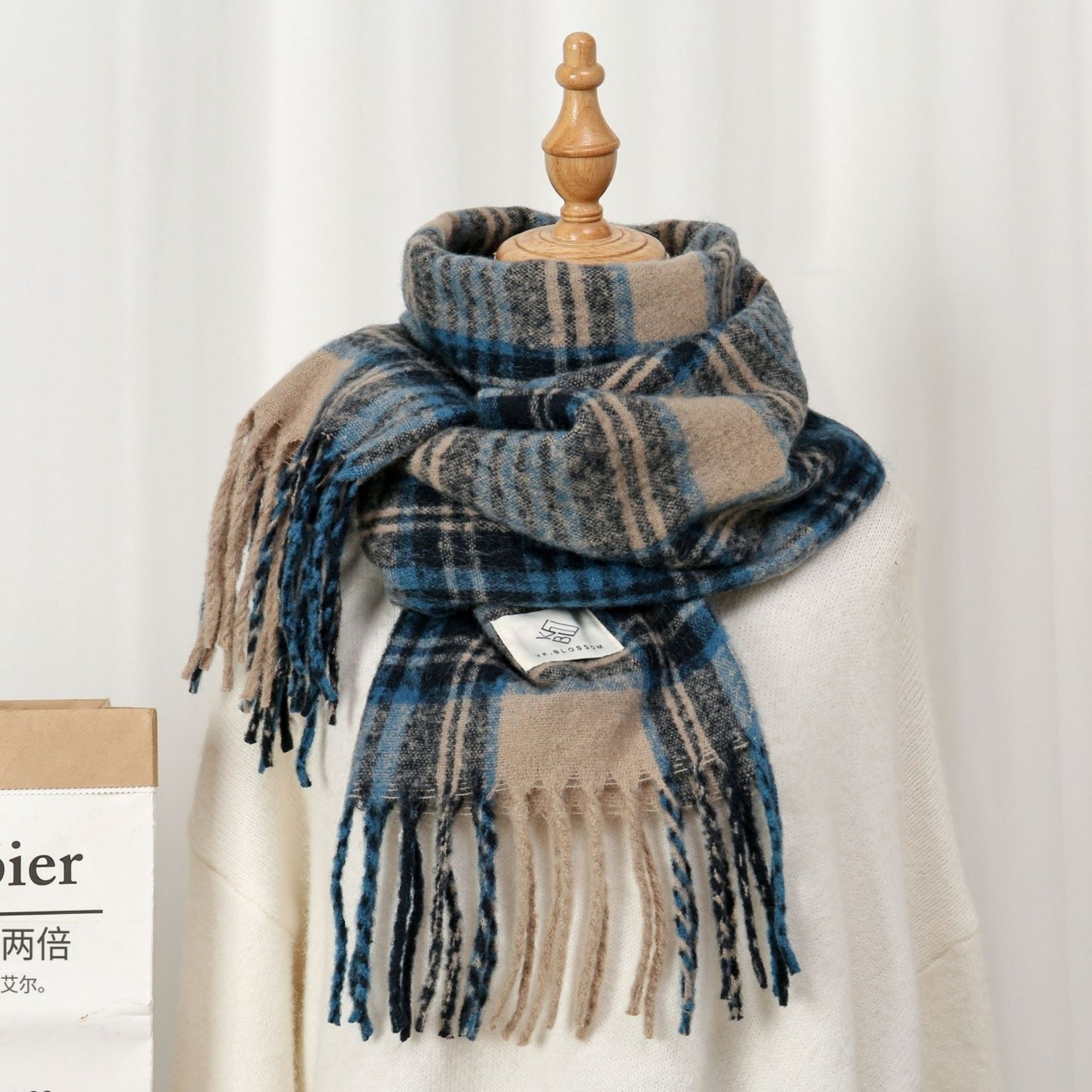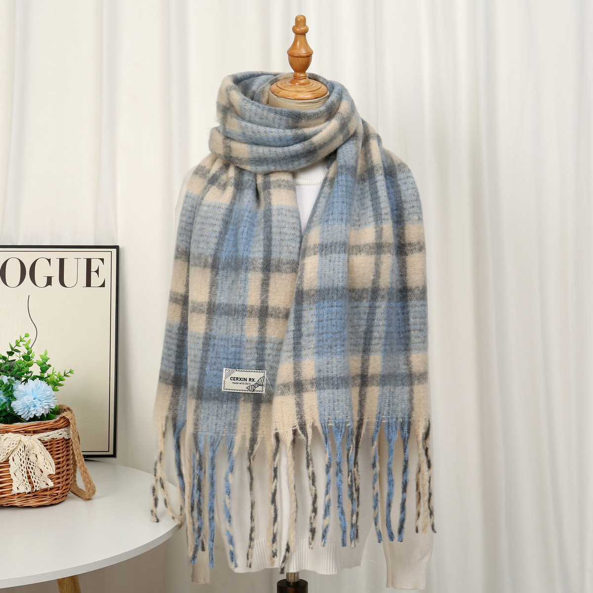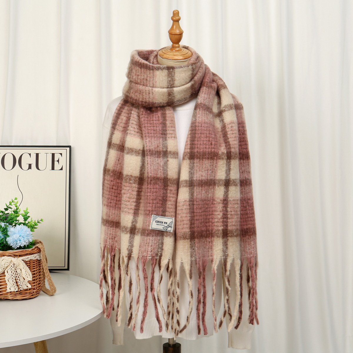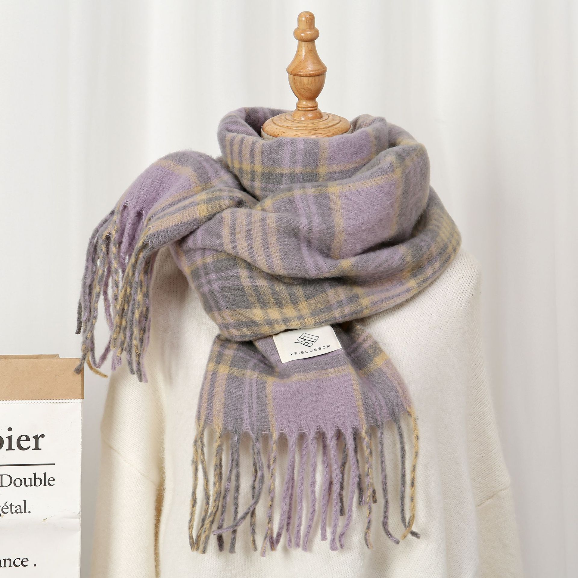 새로운 패션 한국 다목적 흑백 격자 무늬 스카프 겨울 따뜻한 두꺼운 학생 캐시미어 스카프스토어 가기