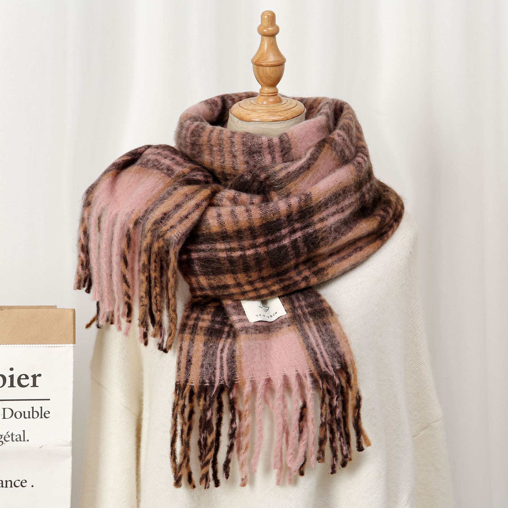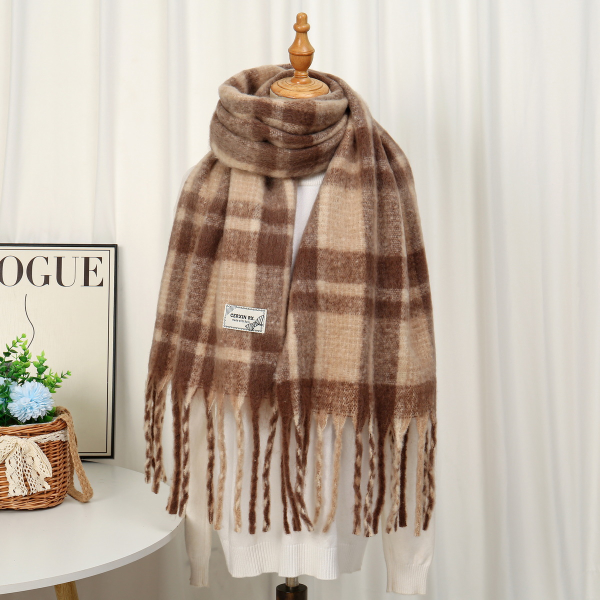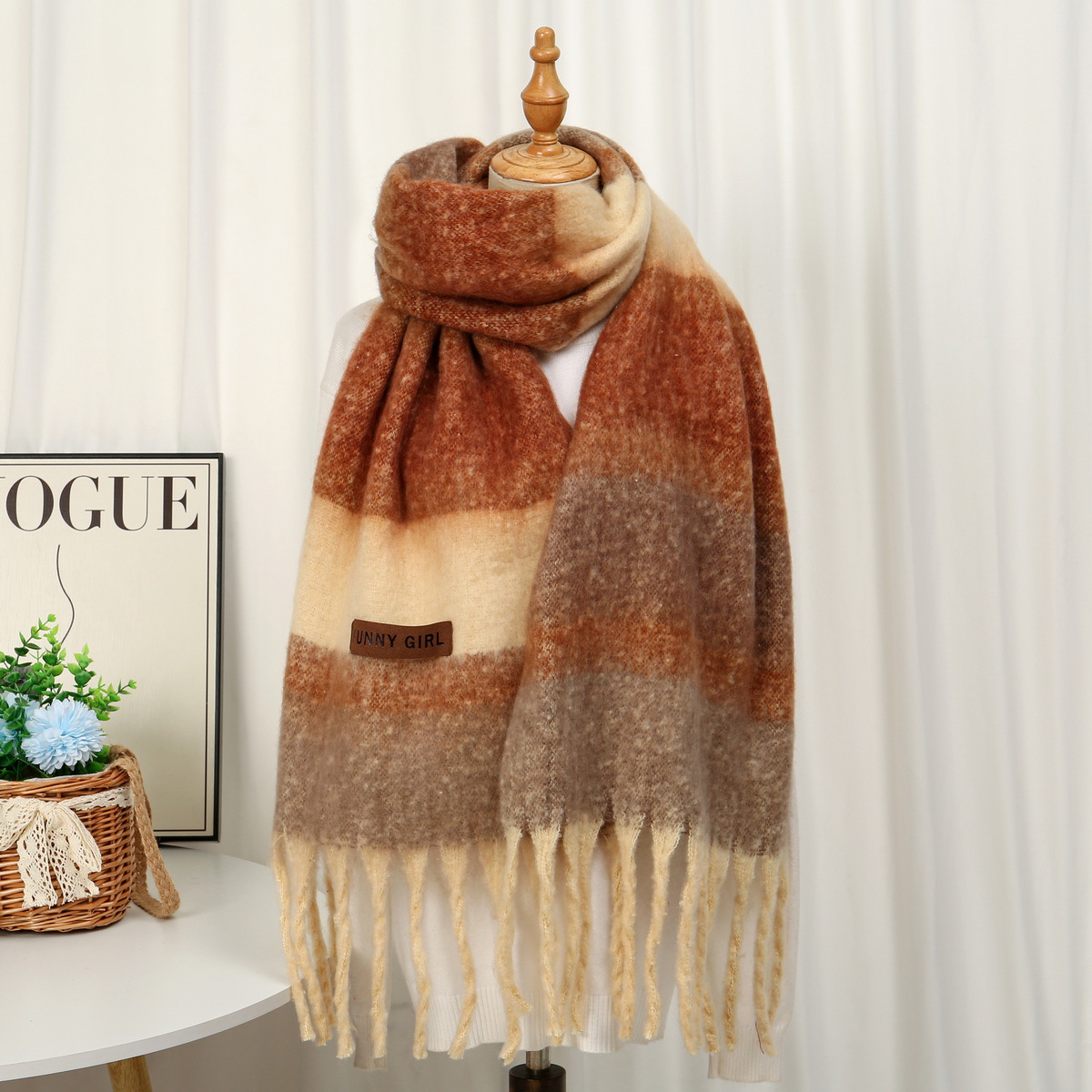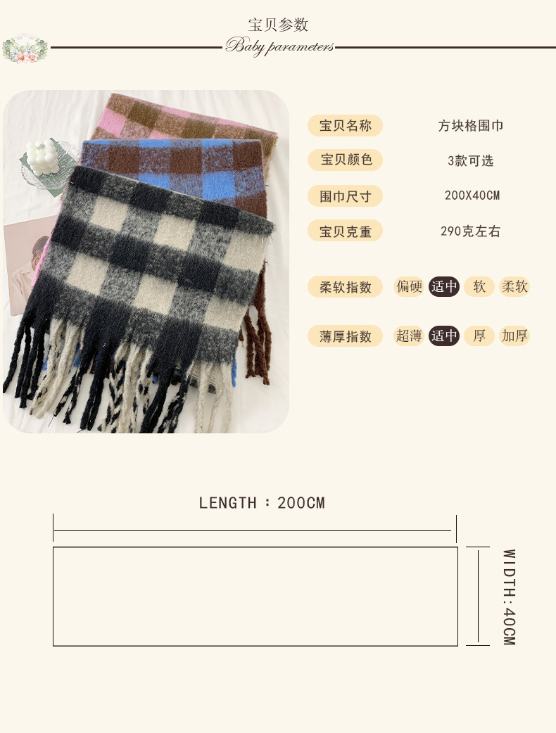 • 402 모헤어 대형 체크무늬 카멜 40*220cm
