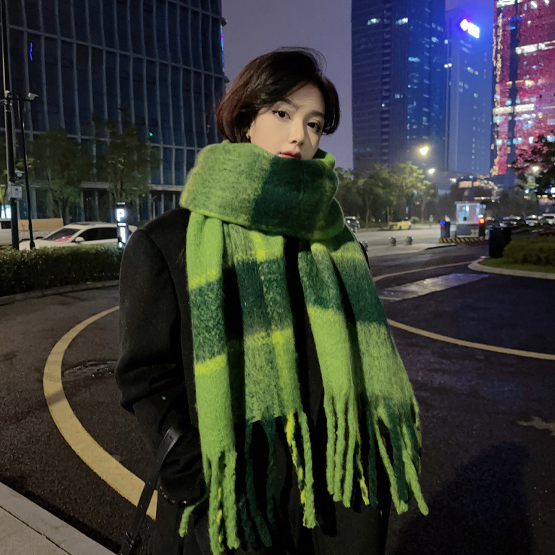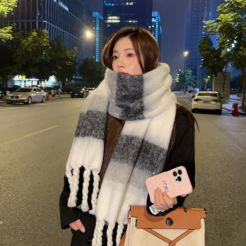 새로운 패션 한국 다목적 흑백 격자 무늬 스카프 겨울 따뜻한 두꺼운 학생 캐시미어 스카프