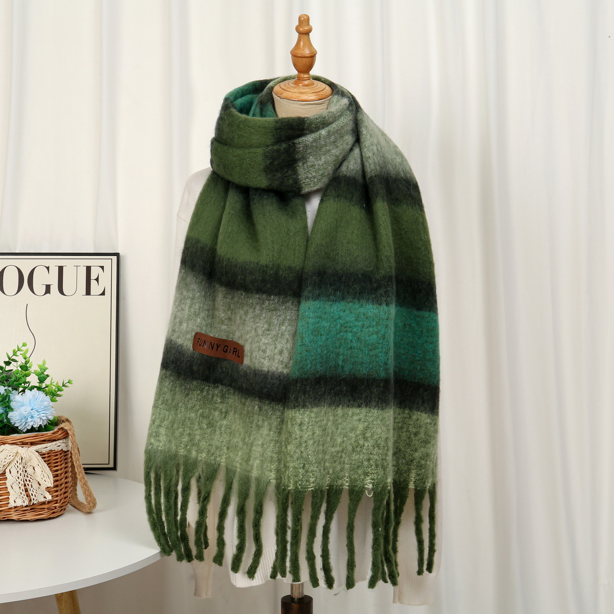 • 396 모헤어 빅 브레이드 스트라이프 그린 40*220cm