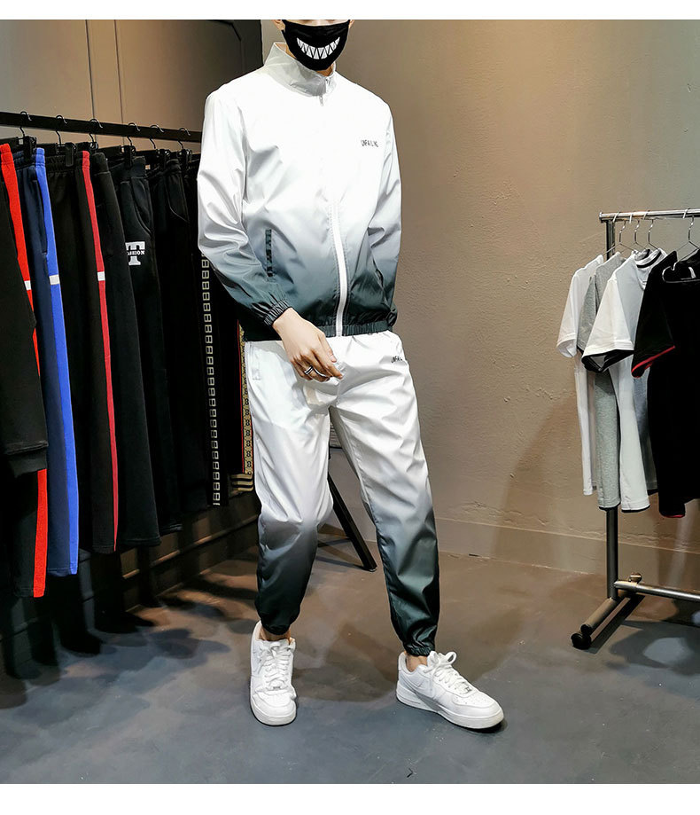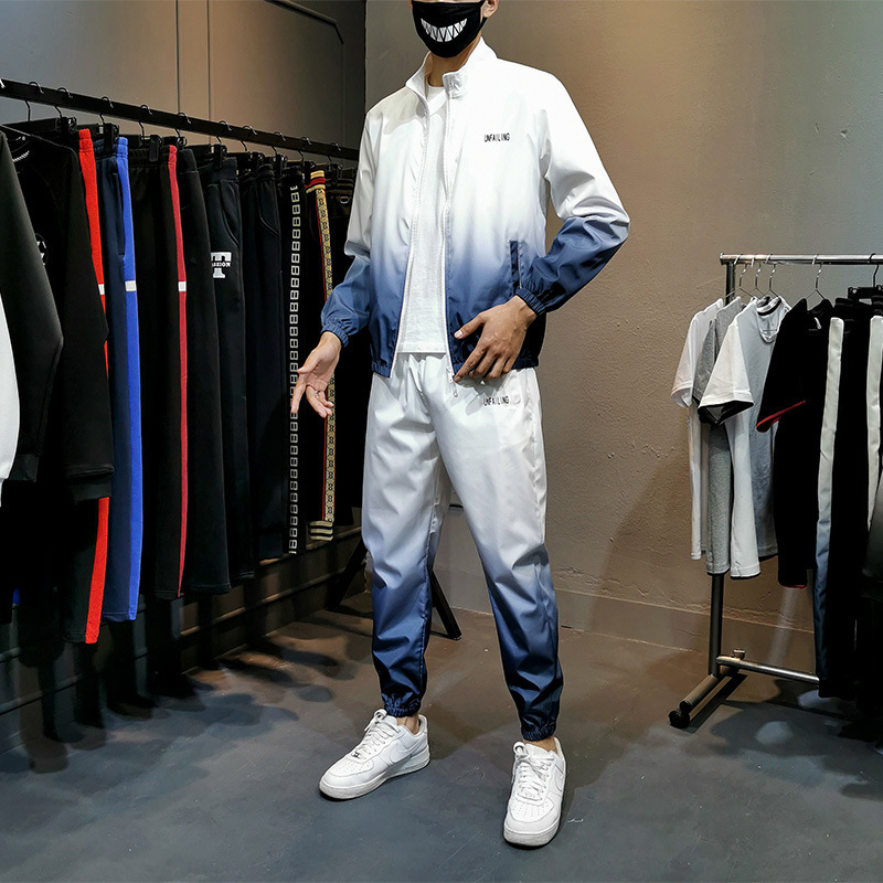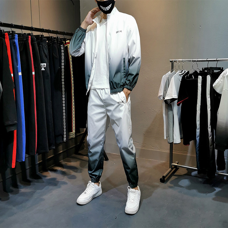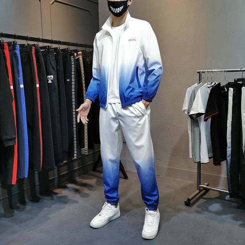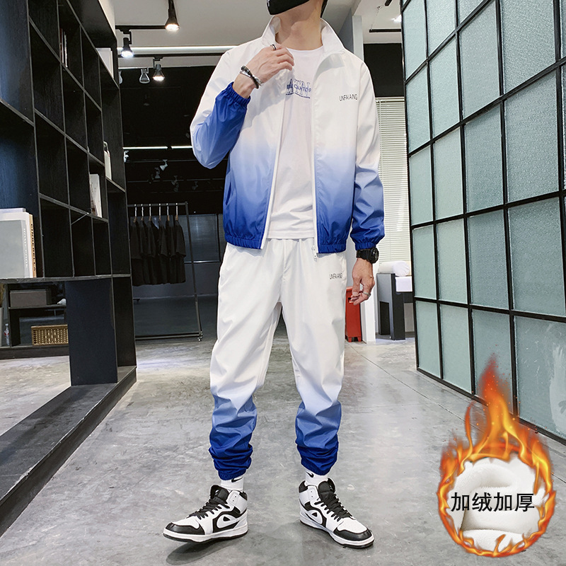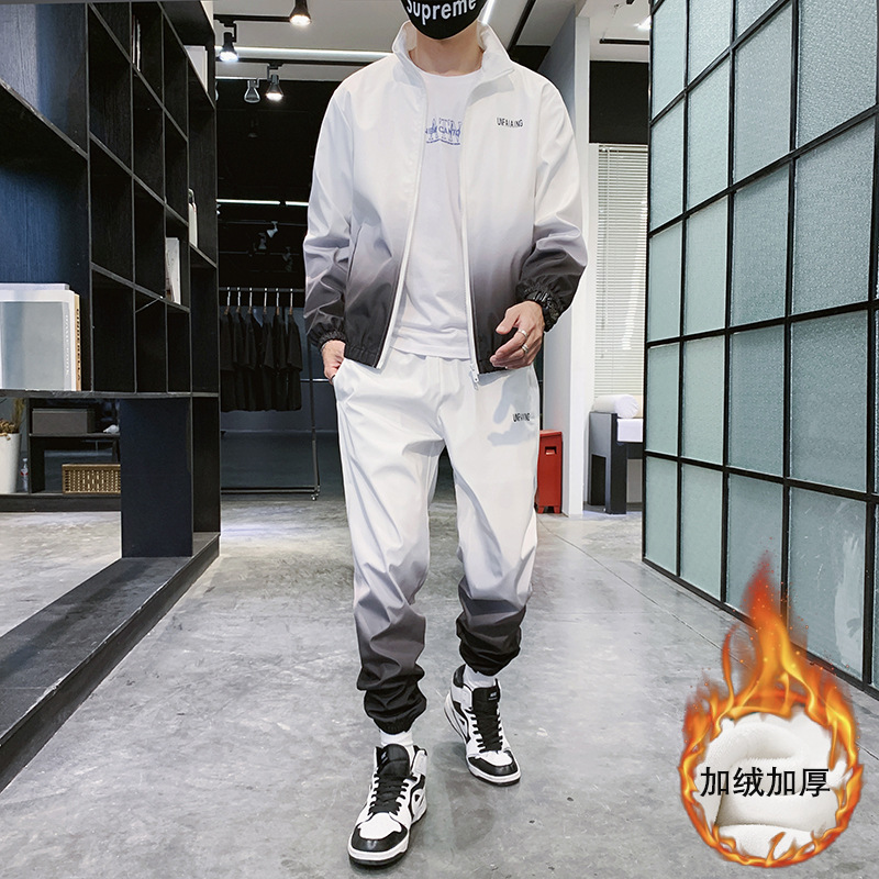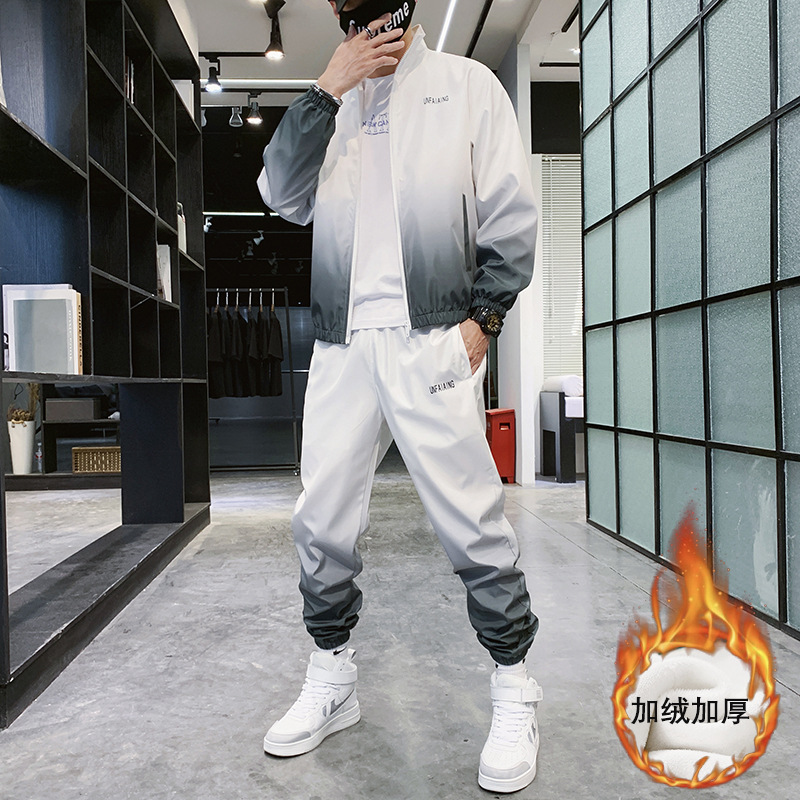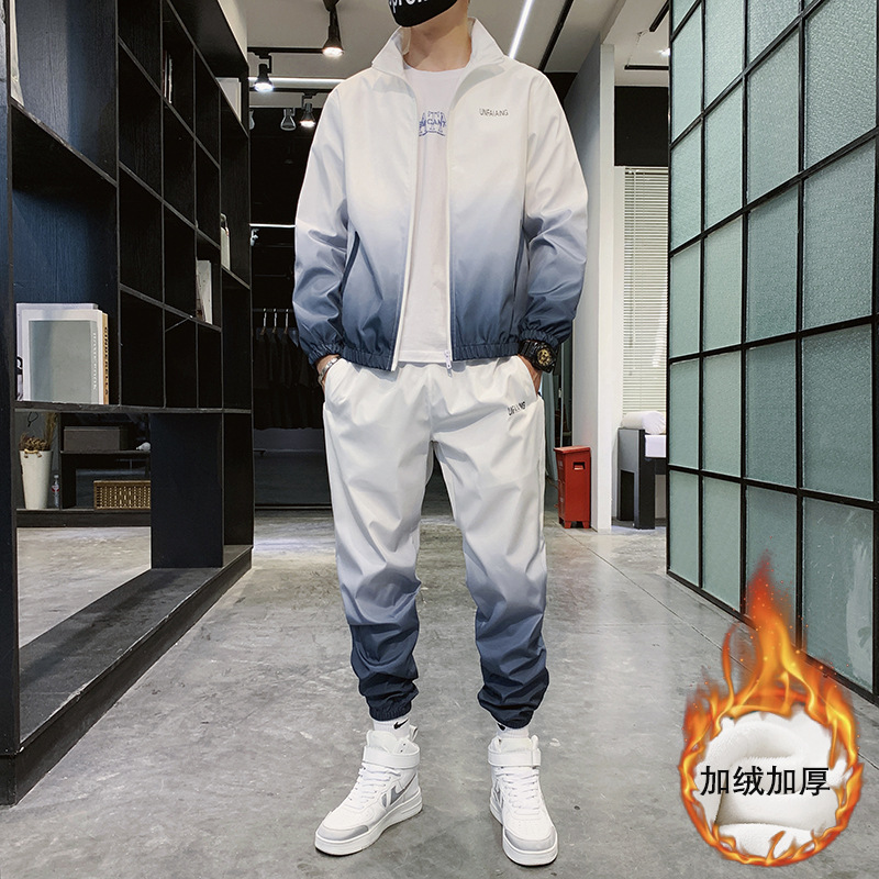 가을과 겨울 캐주얼 세트 한국 유행 점진적 수직 칼라 양털 재킷 남성용 스포츠웨어 방수 방풍 재킷